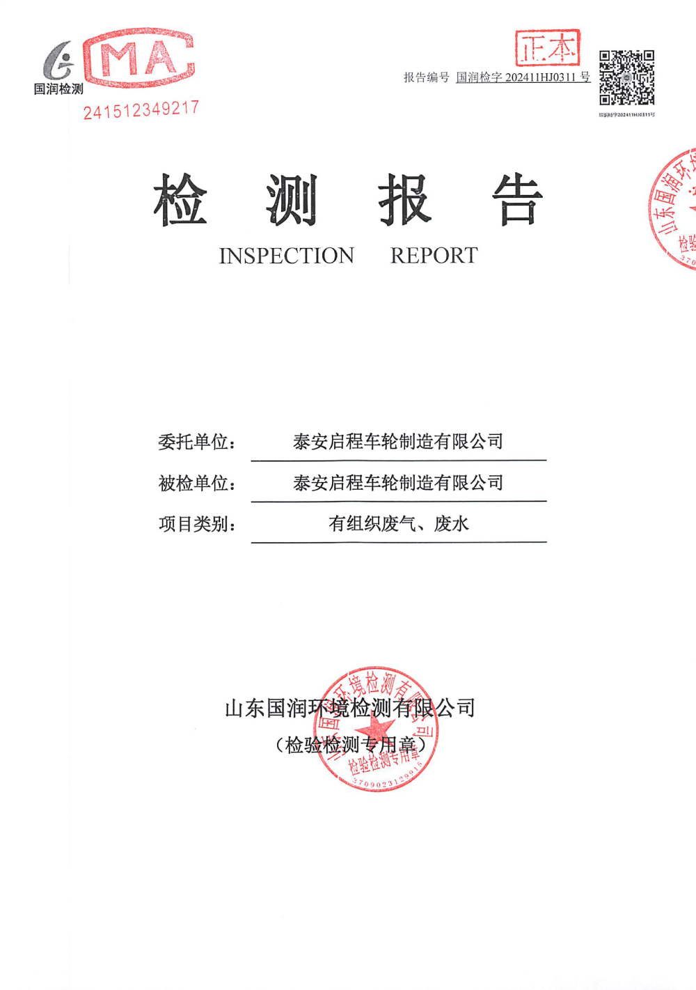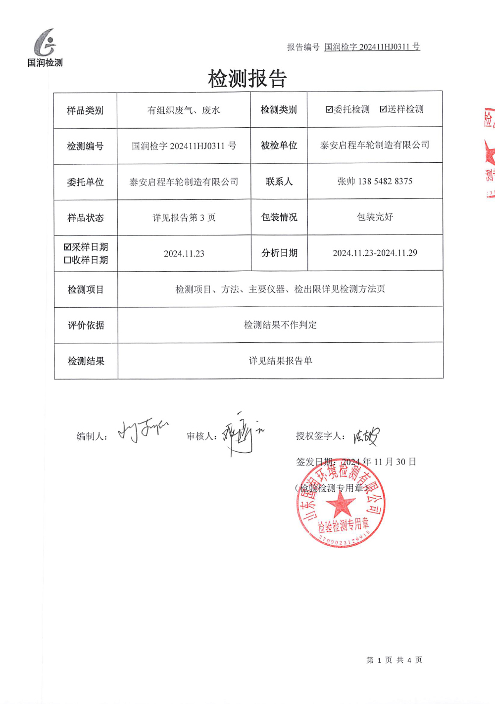 泰安啟程車輪制造有限公司2024年11月份環(huán)境污染物排放檢測報告