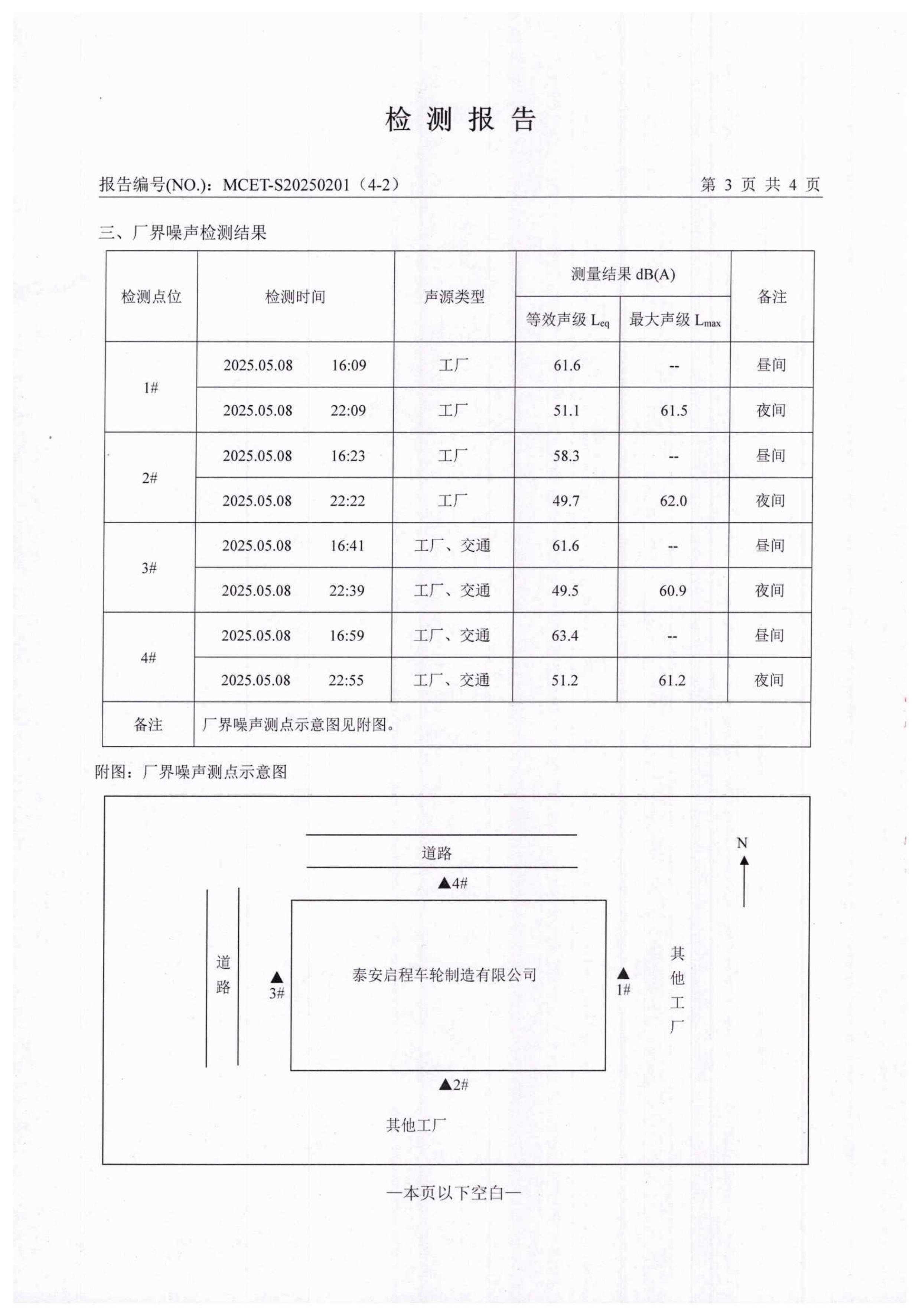 泰安啟程車輪制造有限公司2025年5月份環(huán)境污染物排放檢測報告