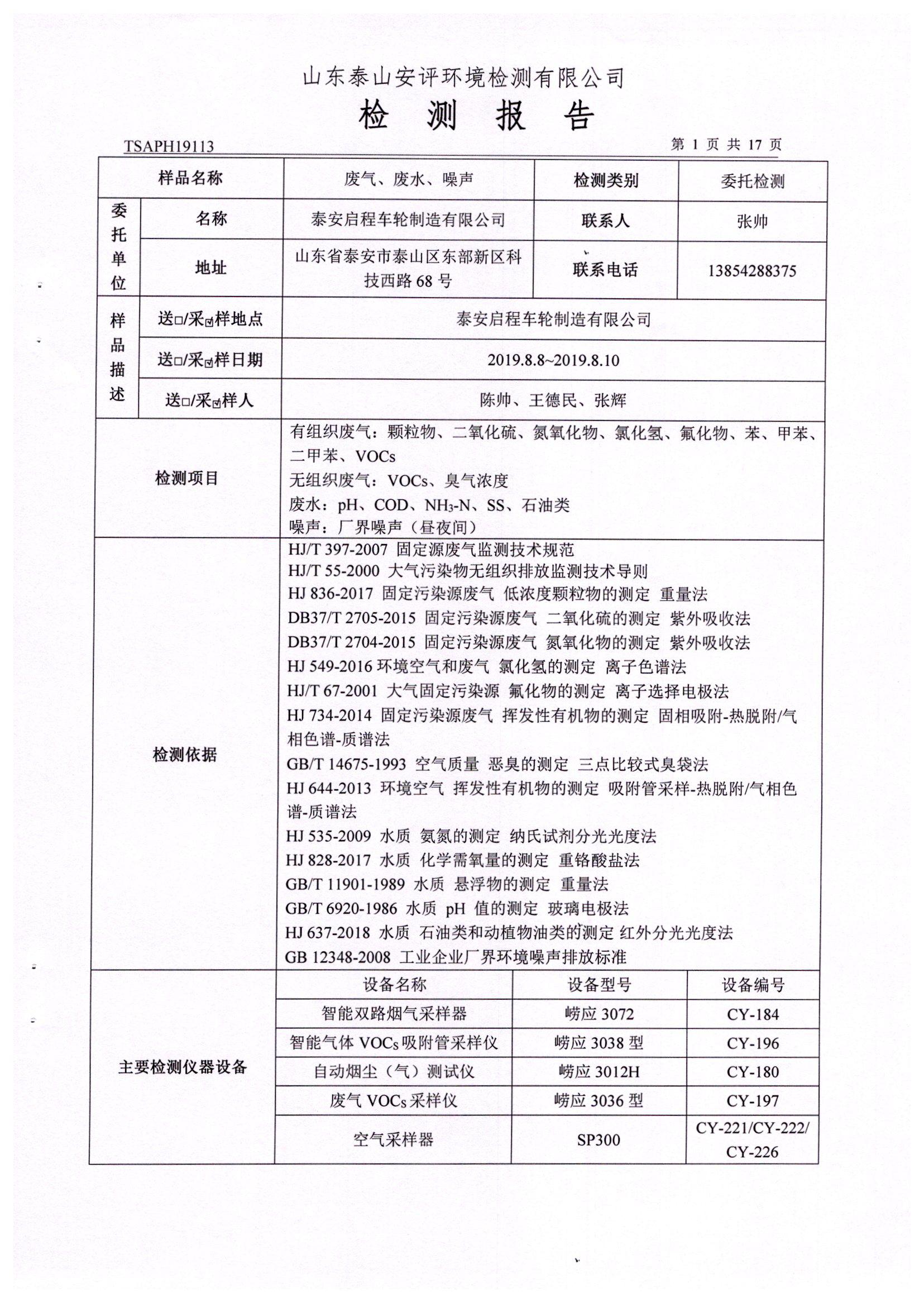 根據(jù)《中華人民共和國(guó)環(huán)境保護(hù)法》、《企事業(yè)單位環(huán)境信息公開(kāi)辦法》有關(guān)規(guī)定,現(xiàn)將泰安啟程車(chē)輪制造有限公司環(huán)境信息公開(kāi)如下: