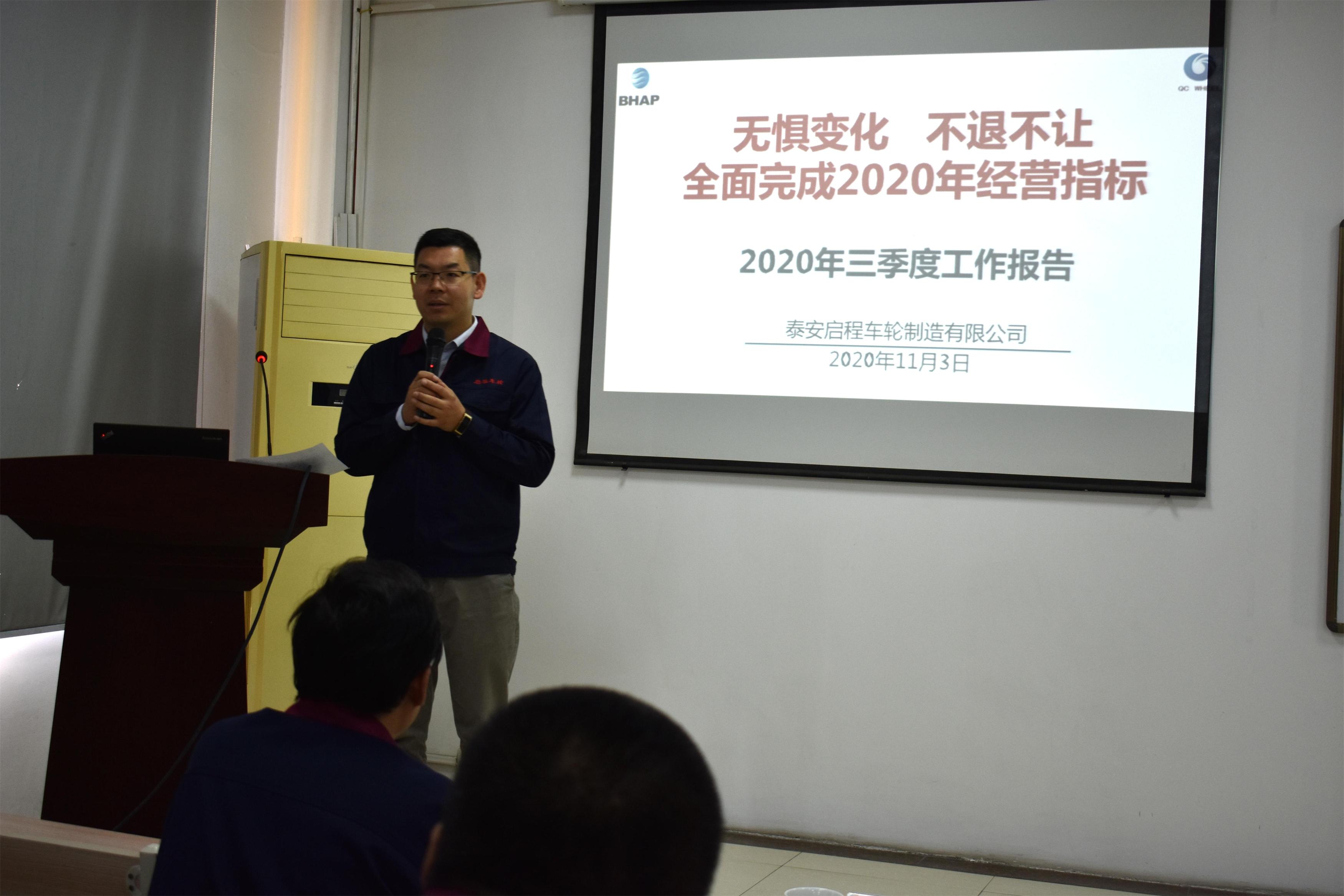 海納川市場(chǎng)開發(fā)部總經(jīng)理、泰安啟程執(zhí)行董事馬磊做了講話,他就泰安啟程結(jié)合當(dāng)前的情況、未來的發(fā)展,如何做的更好,如何使企業(yè)永續(xù)經(jīng)營,馬磊執(zhí)行董事與大家進(jìn)行了分析,提出了工作要求,一是認(rèn)清形勢(shì),正視挑戰(zhàn)。面對(duì)未來的2025年,面對(duì)未來發(fā)展要積極思考,泰安啟程全體員工要樹立勇于挑戰(zhàn)的心態(tài),要把握機(jī)遇,把握住企業(yè)的命運(yùn),開展“生產(chǎn)自救”;二是制定戰(zhàn)略,應(yīng)對(duì)挑戰(zhàn)。在十三五即將完美收官、十四五即將來臨的十字路口,面對(duì)復(fù)雜的發(fā)展環(huán)境和形勢(shì),泰安啟程要從EHS管理、成本、產(chǎn)能、核心競(jìng)爭力四個(gè)方面制定發(fā)展戰(zhàn)略,做好準(zhǔn)備,制定好發(fā)展戰(zhàn)略,應(yīng)對(duì)挑戰(zhàn)。三是持續(xù)發(fā)展,永續(xù)經(jīng)營。泰安啟程要從三個(gè)層面做好永續(xù)經(jīng)營,即樹立做企業(yè)的意識(shí)、要有做好企業(yè)的心態(tài)、要挑戰(zhàn)困難的永續(xù)經(jīng)營信念。馬磊執(zhí)行董事強(qiáng)調(diào),所有啟程員工在第四季度的工作中務(wù)必要勇?lián)姑、盡責(zé)擔(dān)當(dāng),認(rèn)清啟程當(dāng)前形勢(shì),敢于挑戰(zhàn)當(dāng)前面臨風(fēng)險(xiǎn),克服所有不利因素和壓力,確保完成四個(gè)“不退不讓”目標(biāo)任務(wù),全力打贏“十三五”收官之戰(zhàn)!