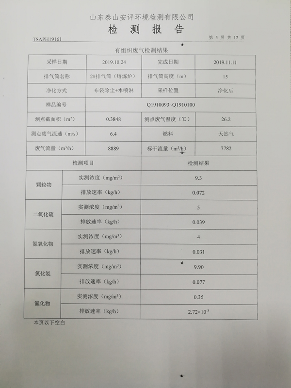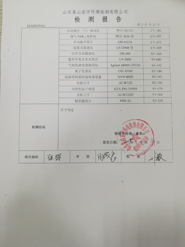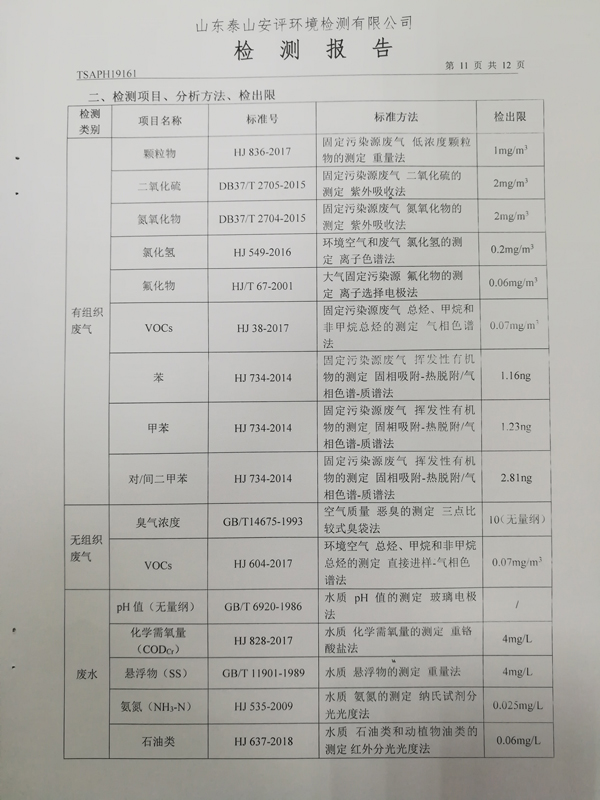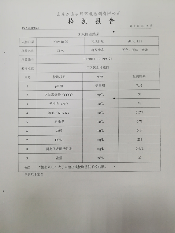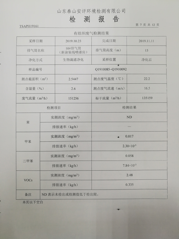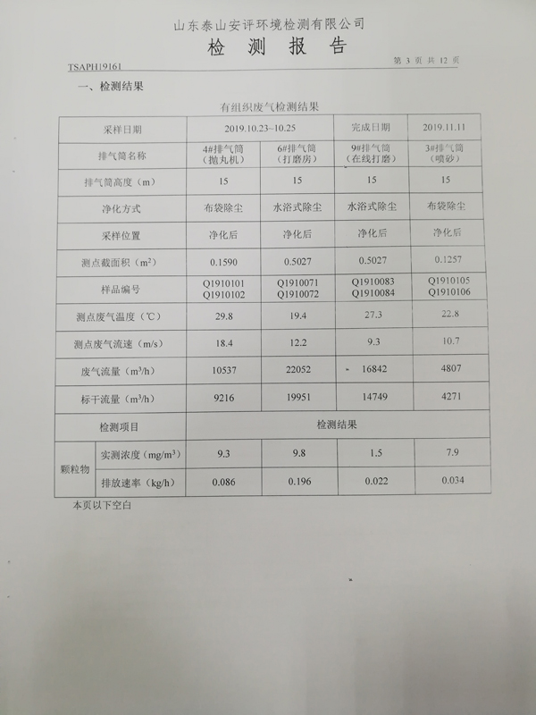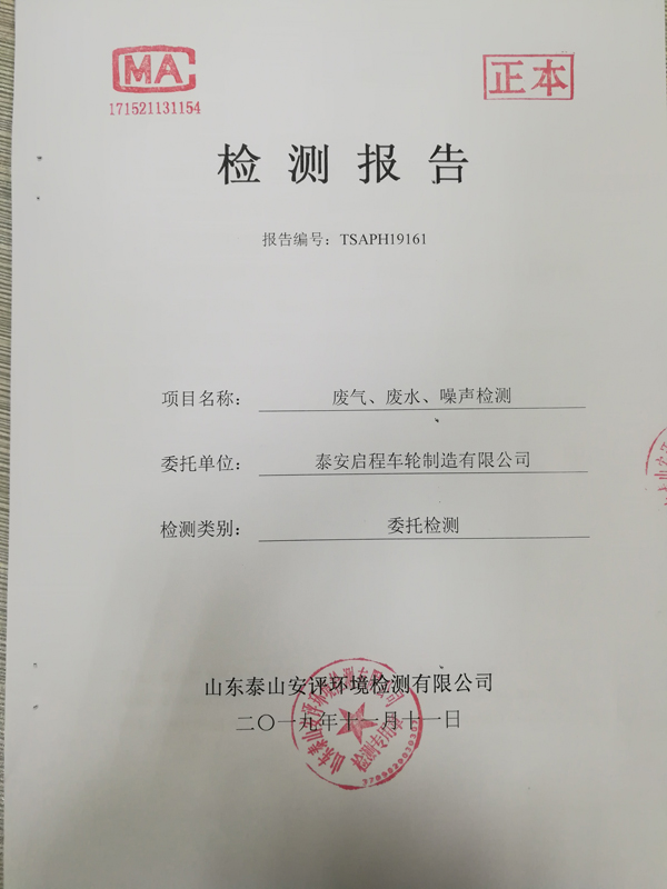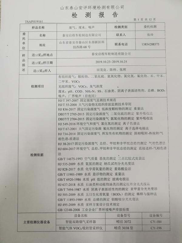 泰安啟程車(chē)輪制造有限公司2019年10月份檢測(cè)報(bào)告