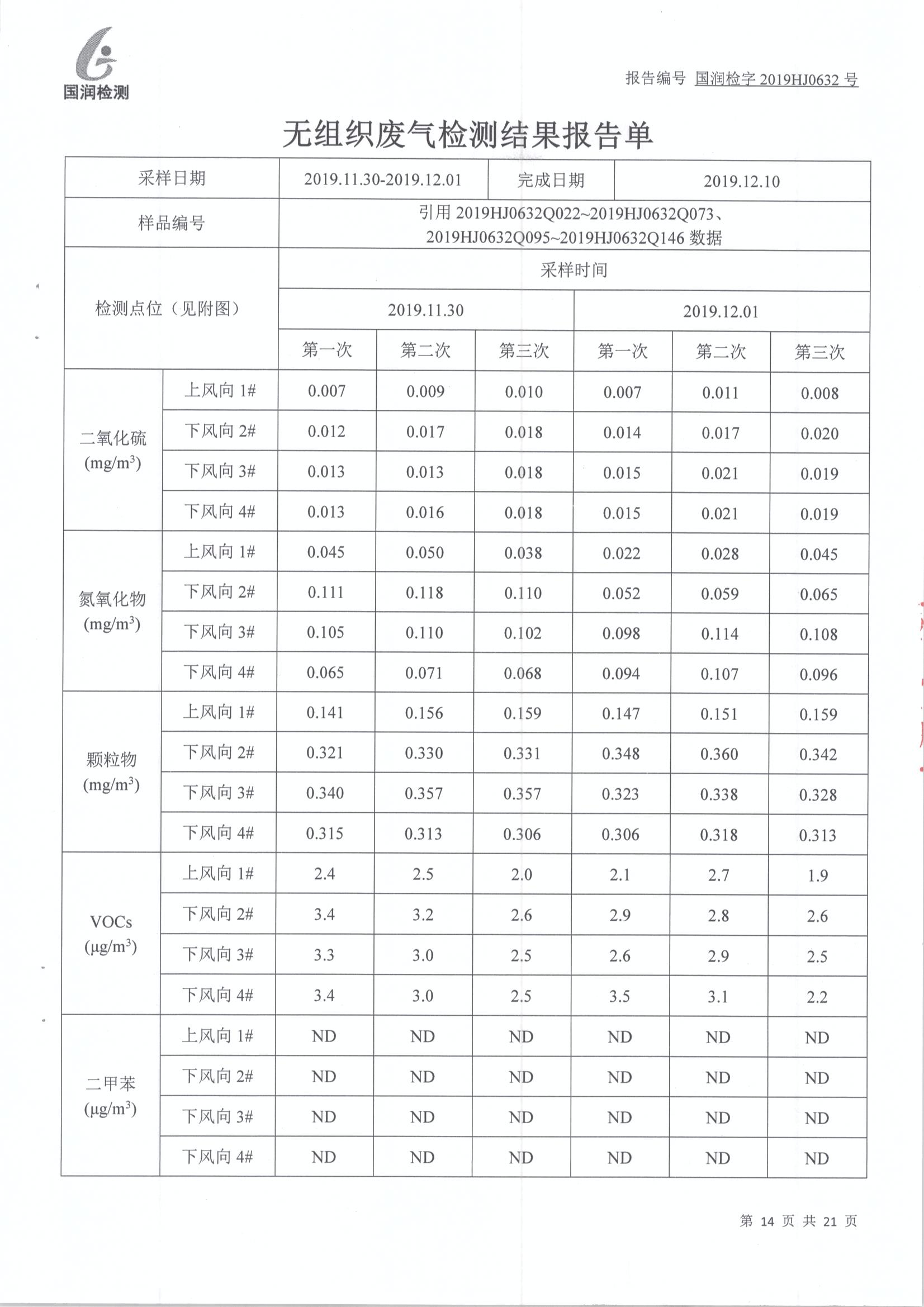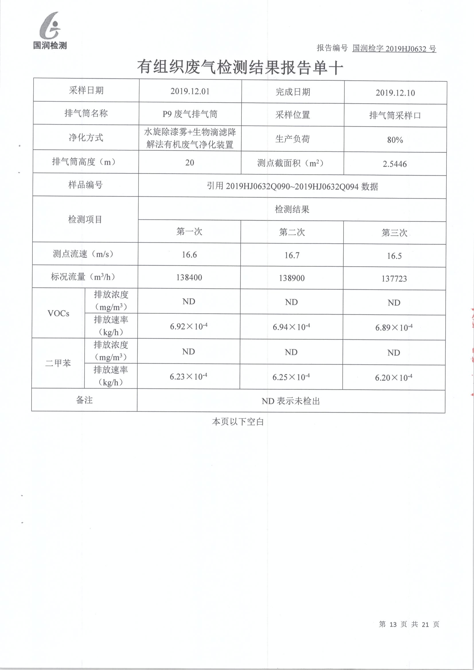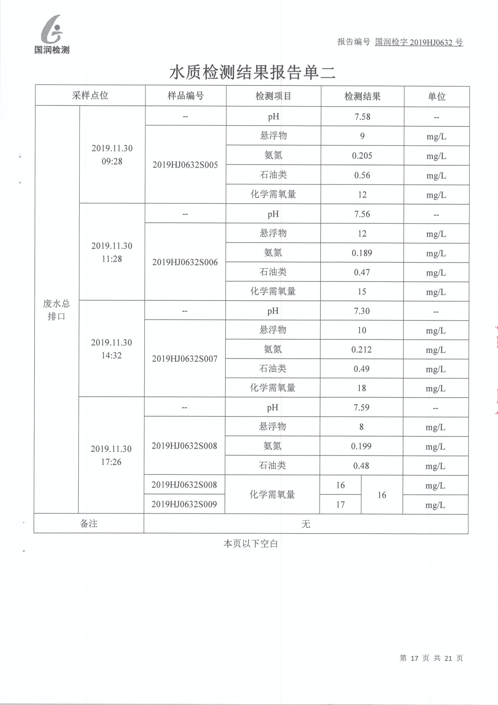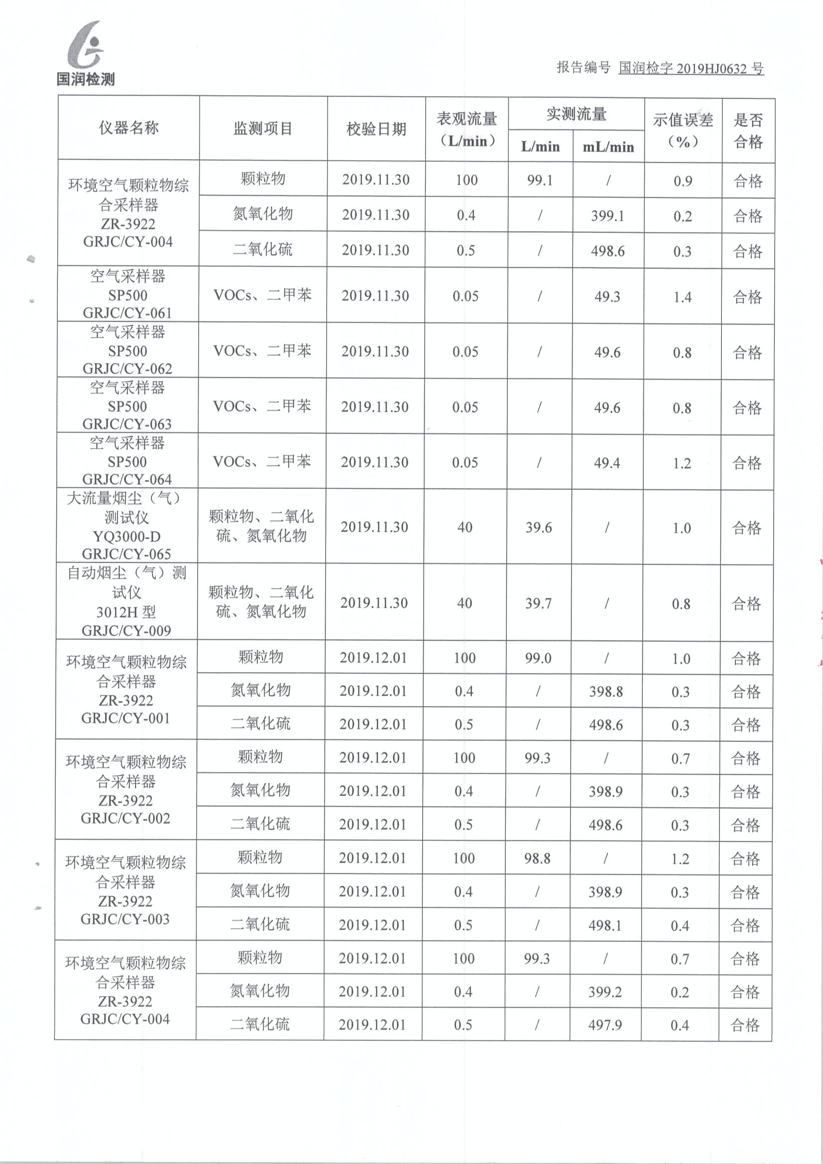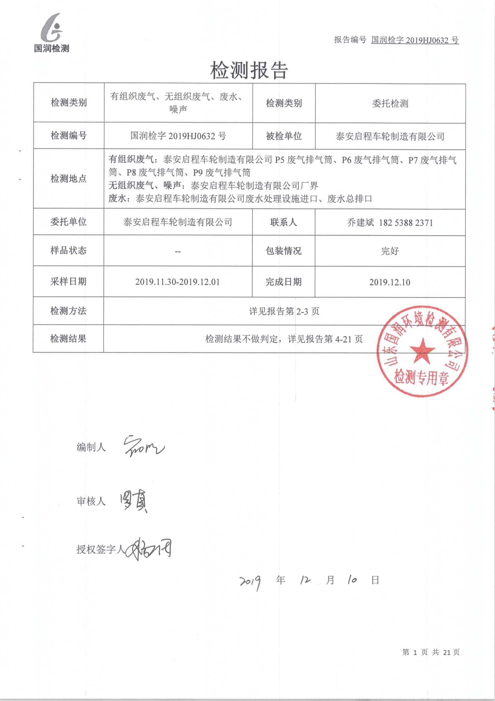 泰安啟程車輪制造有限公司2019年11月份檢測報告