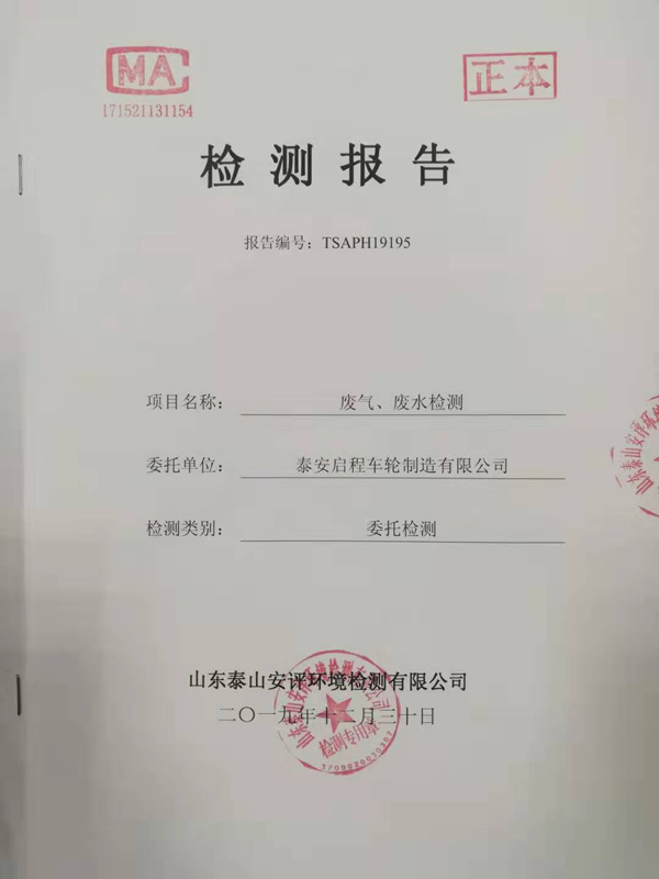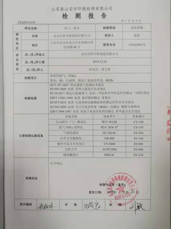 泰安啟程車輪制造有限公司2019年12月份檢測報(bào)告