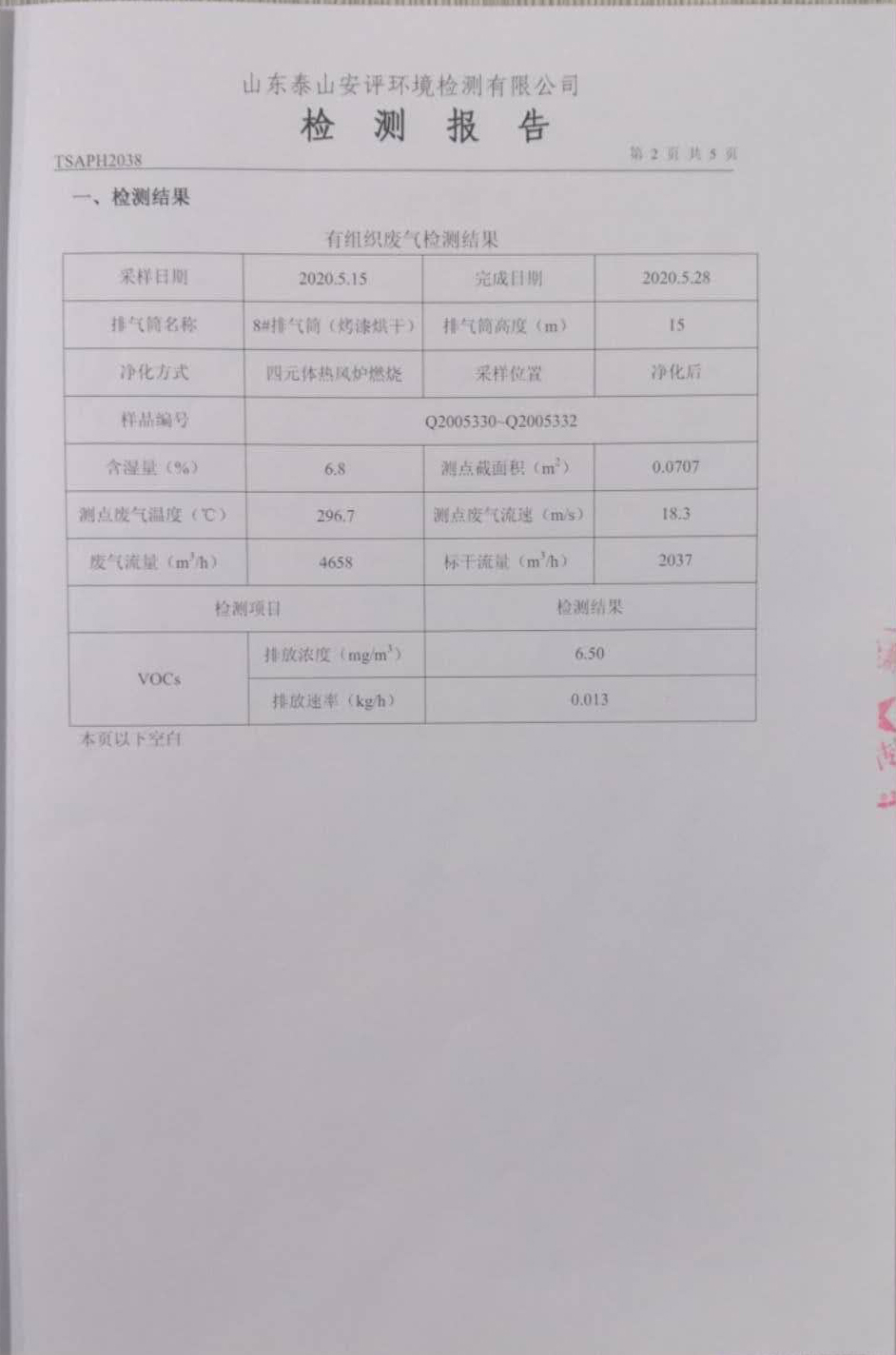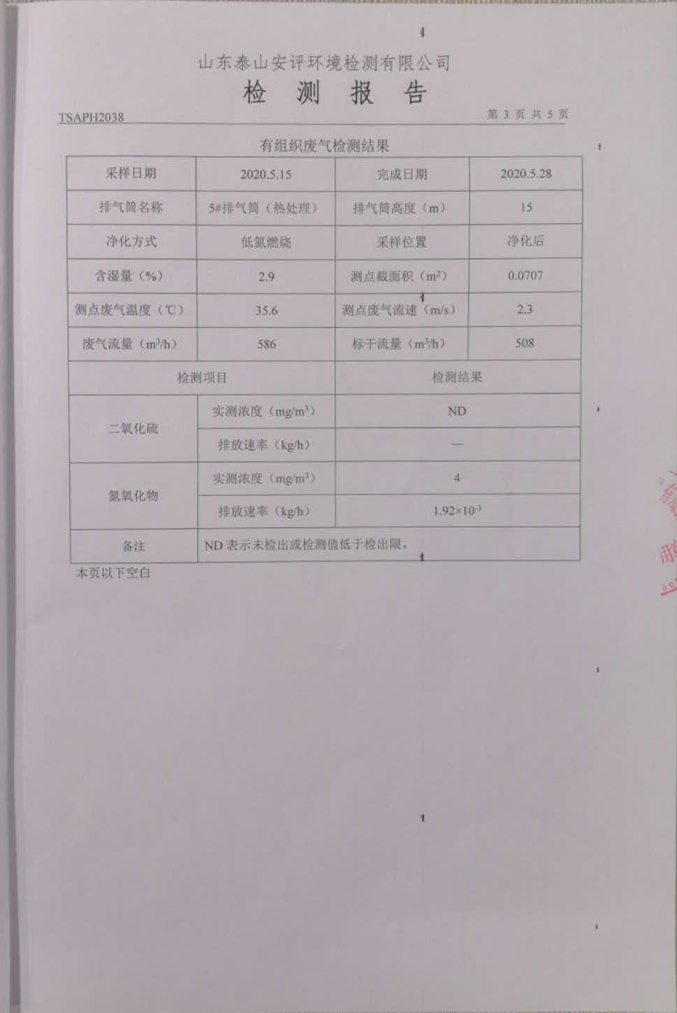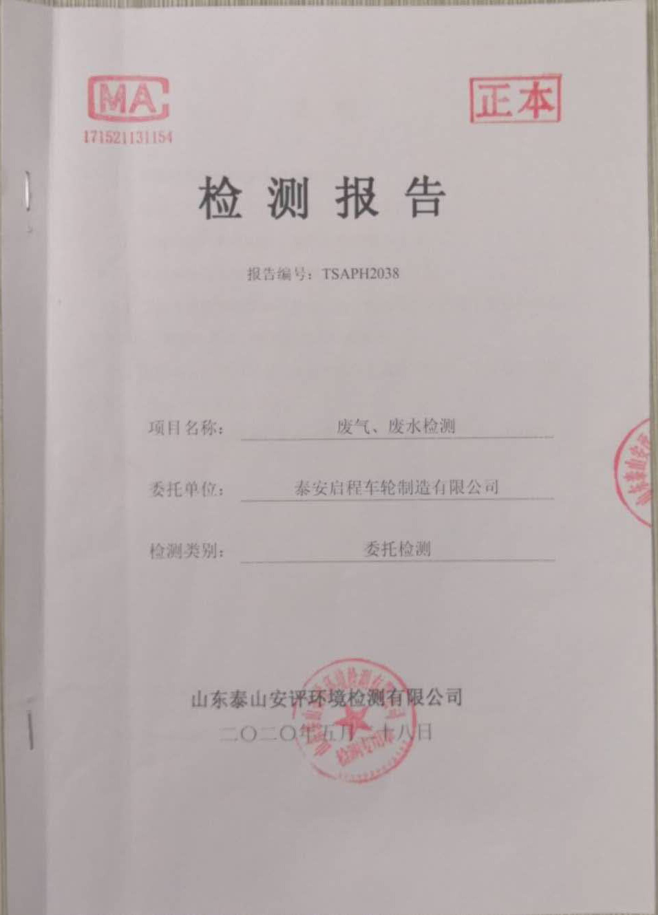 泰安啟程車輪制造有限公司2020年5月份環(huán)境污染物排放檢測報告