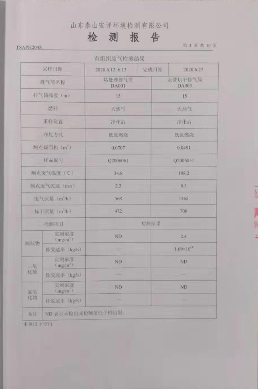 泰安啟程車輪制造有限公司2020年6月份環(huán)境污染物排放檢測報(bào)告
