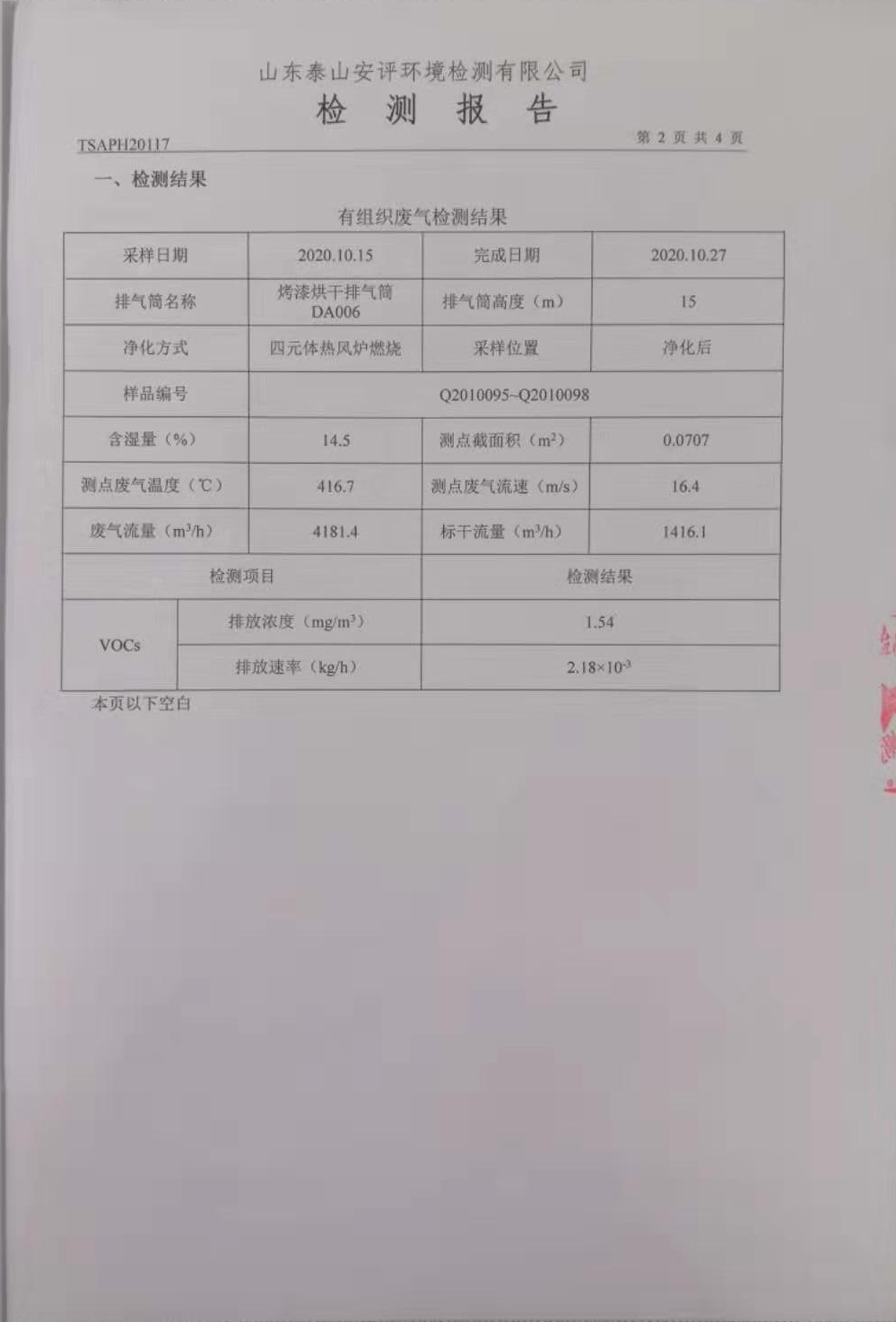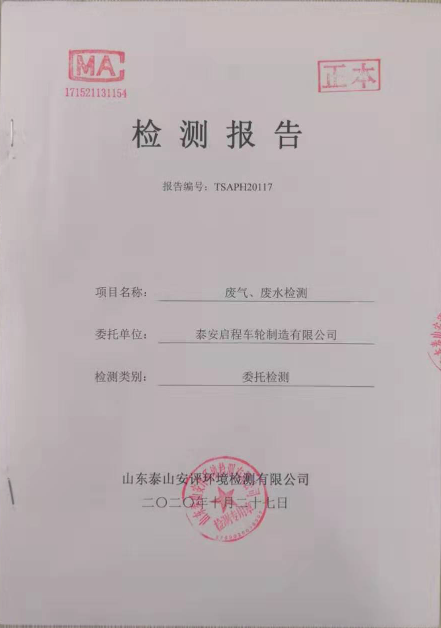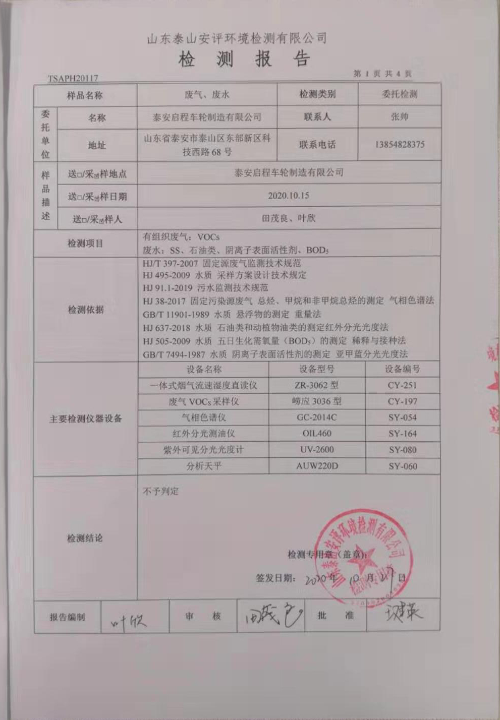 泰安啟程車輪制造有限公司2020年10月份環(huán)境污染物排放檢測報告