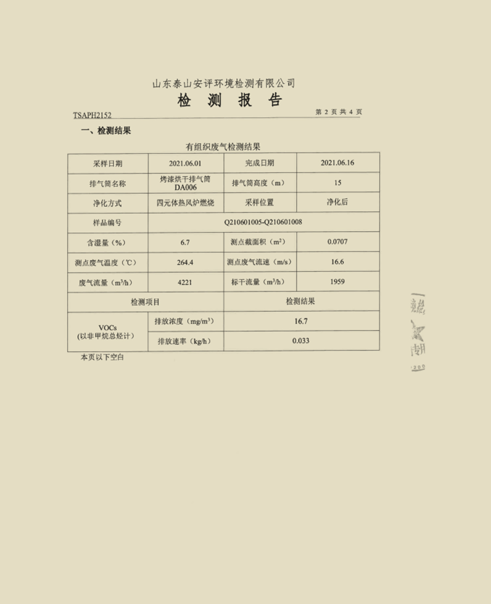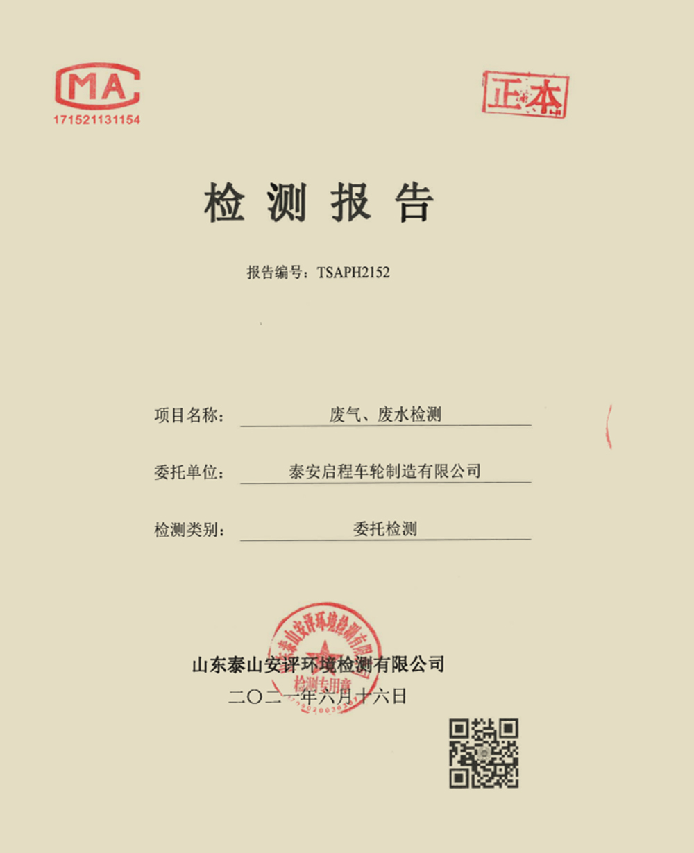 泰安啟程車輪制造有限公司2021年6月份環(huán)境污染物排放檢測報(bào)告