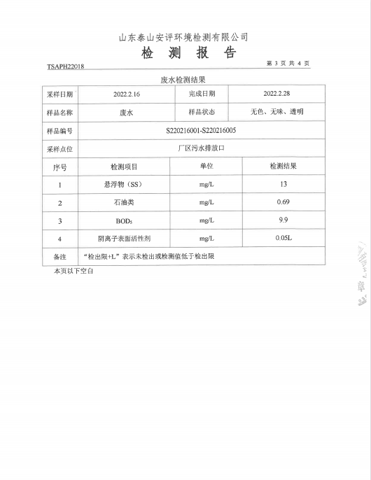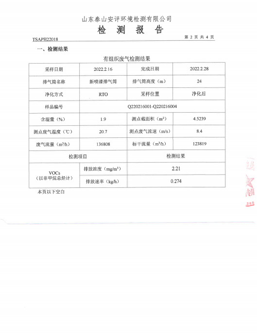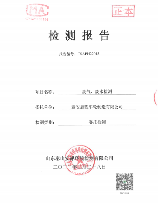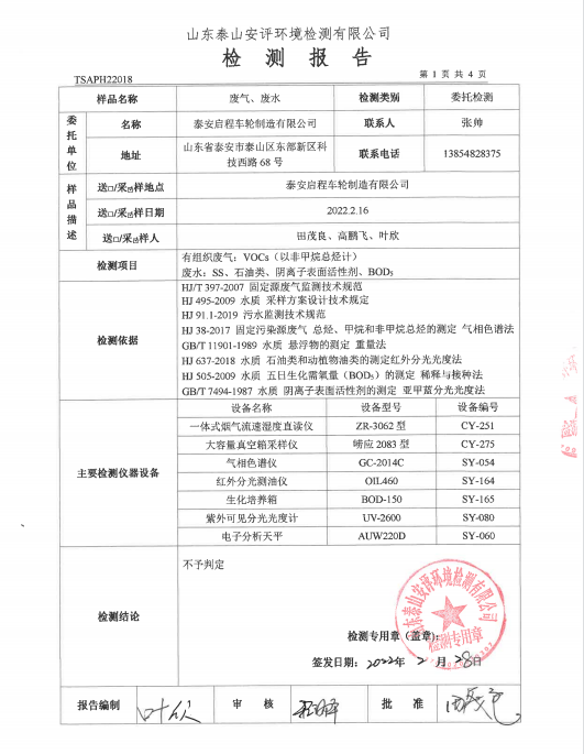 泰安啟程車輪制造有限公司2022年2月份環(huán)境污染物排放檢測(cè)報(bào)告