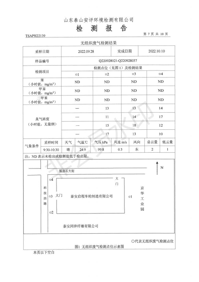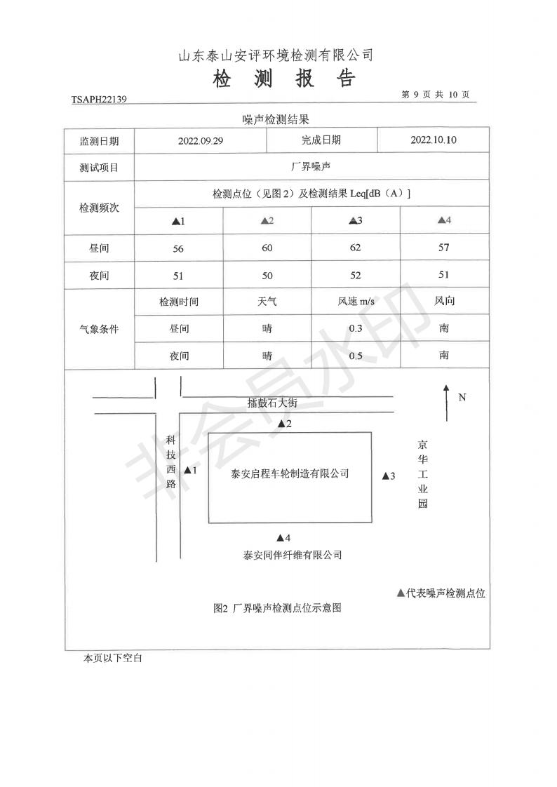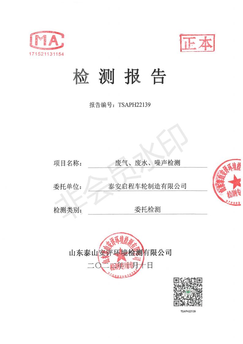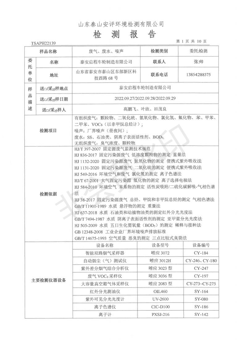 泰安啟程車輪制造有限公司2022年9月份環(huán)境污染物排放檢測報告
