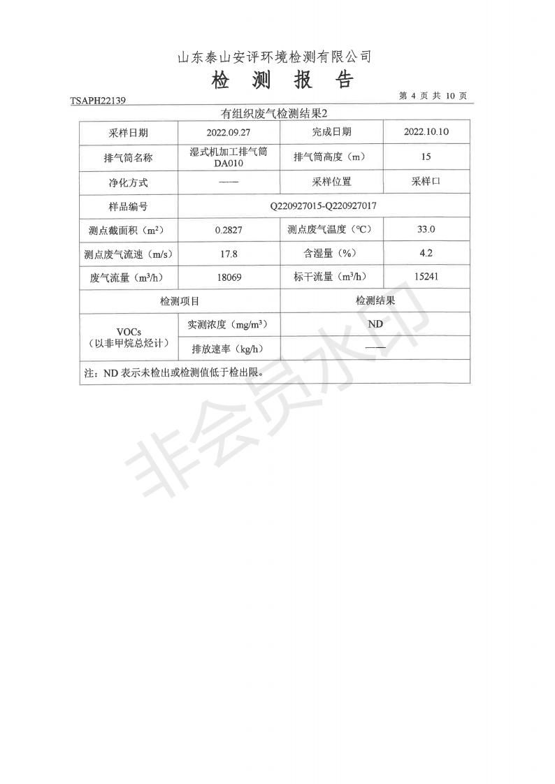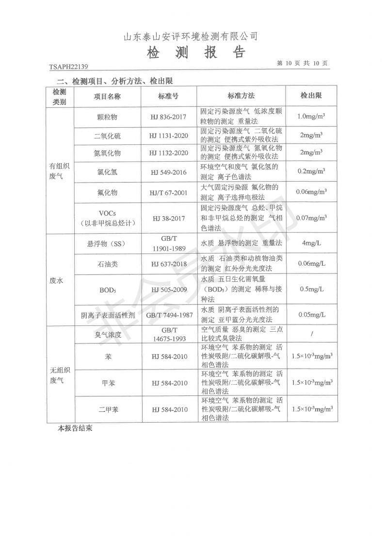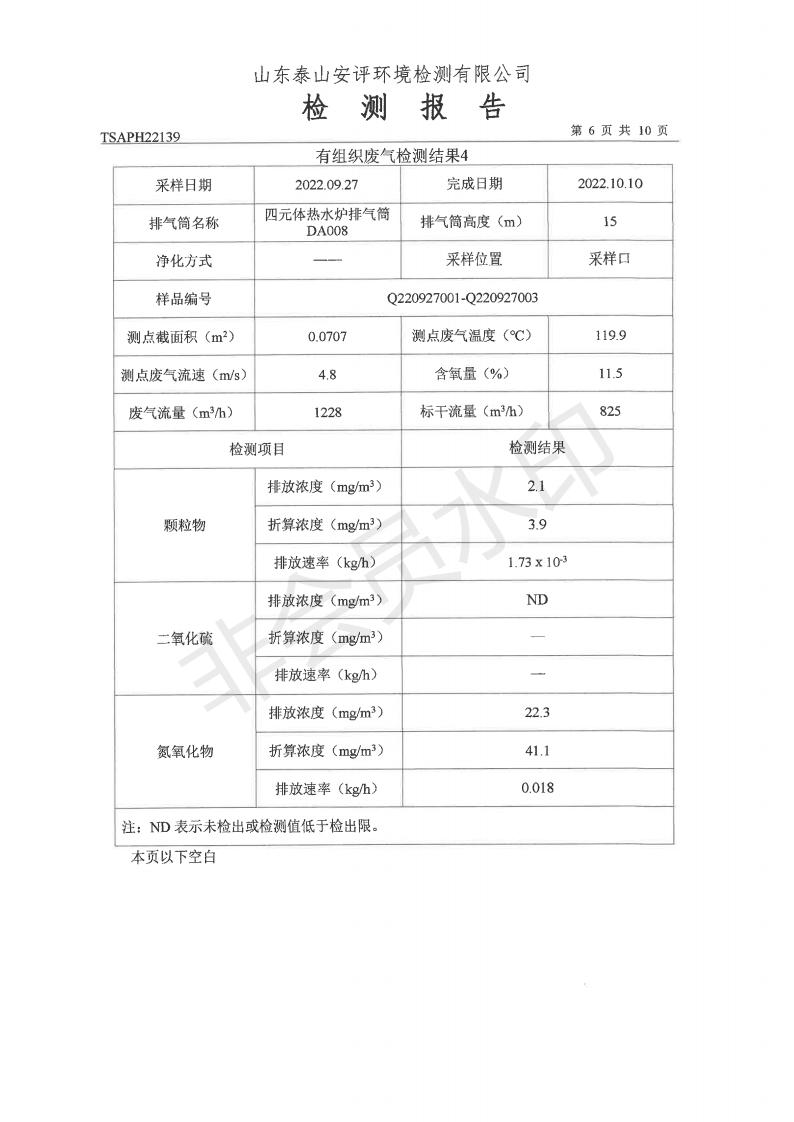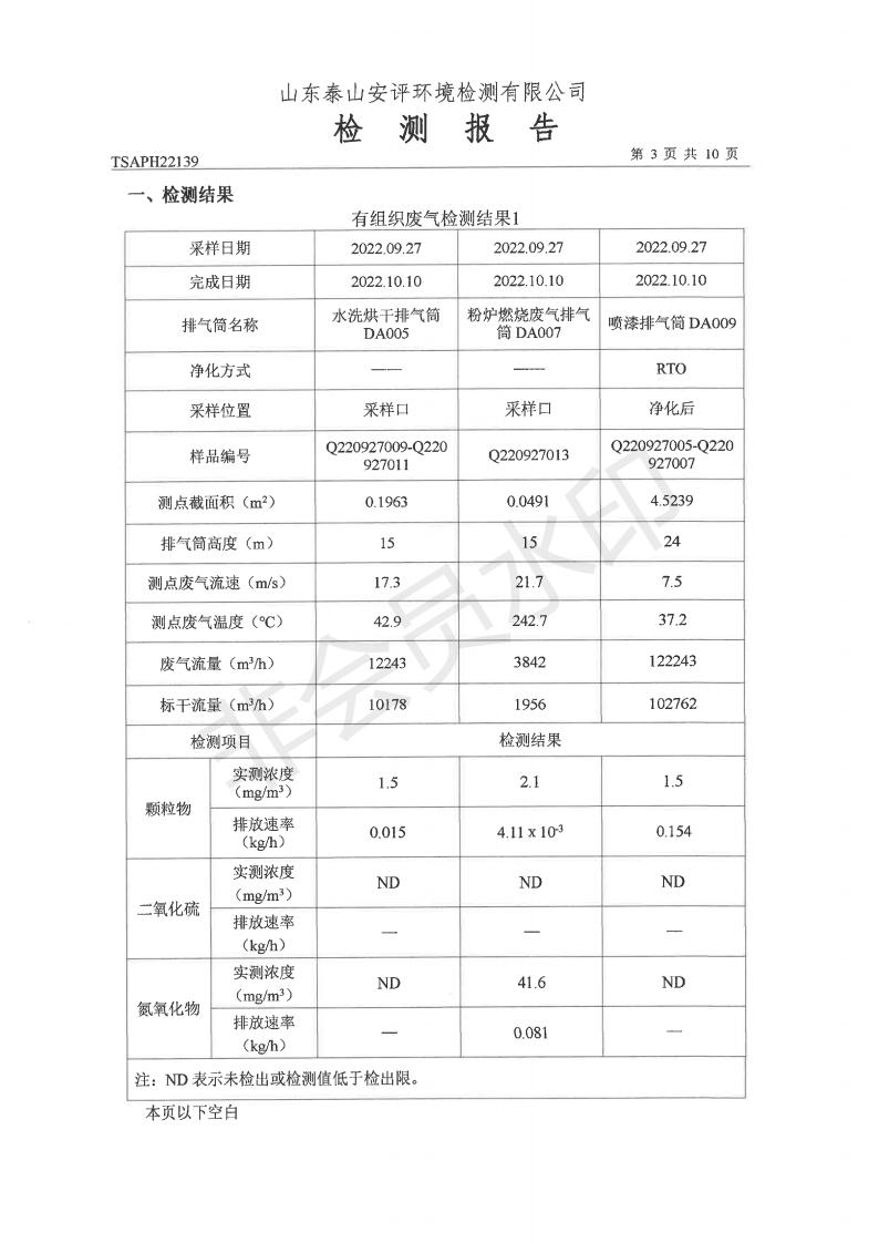 泰安啟程車輪制造有限公司2022年9月份環(huán)境污染物排放檢測報告