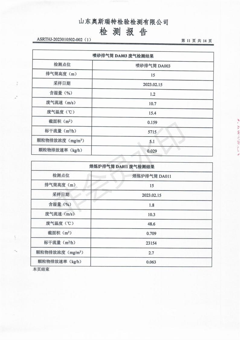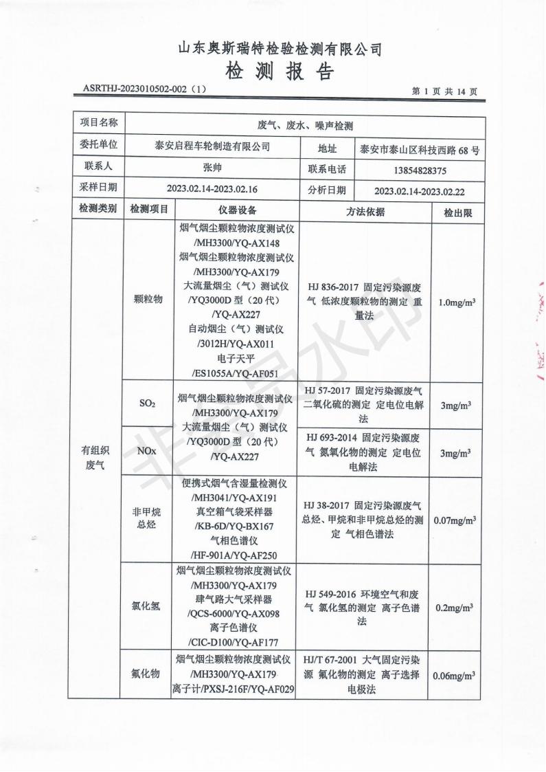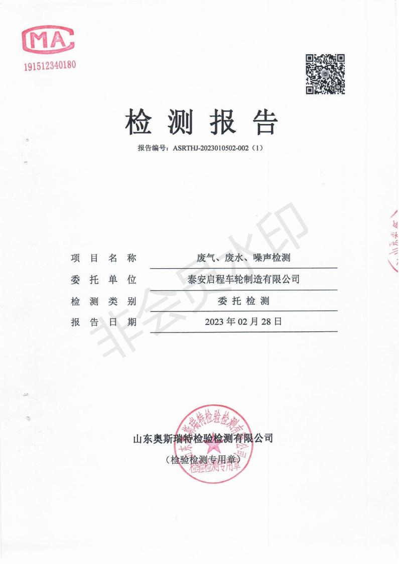 泰安啟程車輪制造有限公司2023年2月份環(huán)境污染物排放檢測(cè)報(bào)告