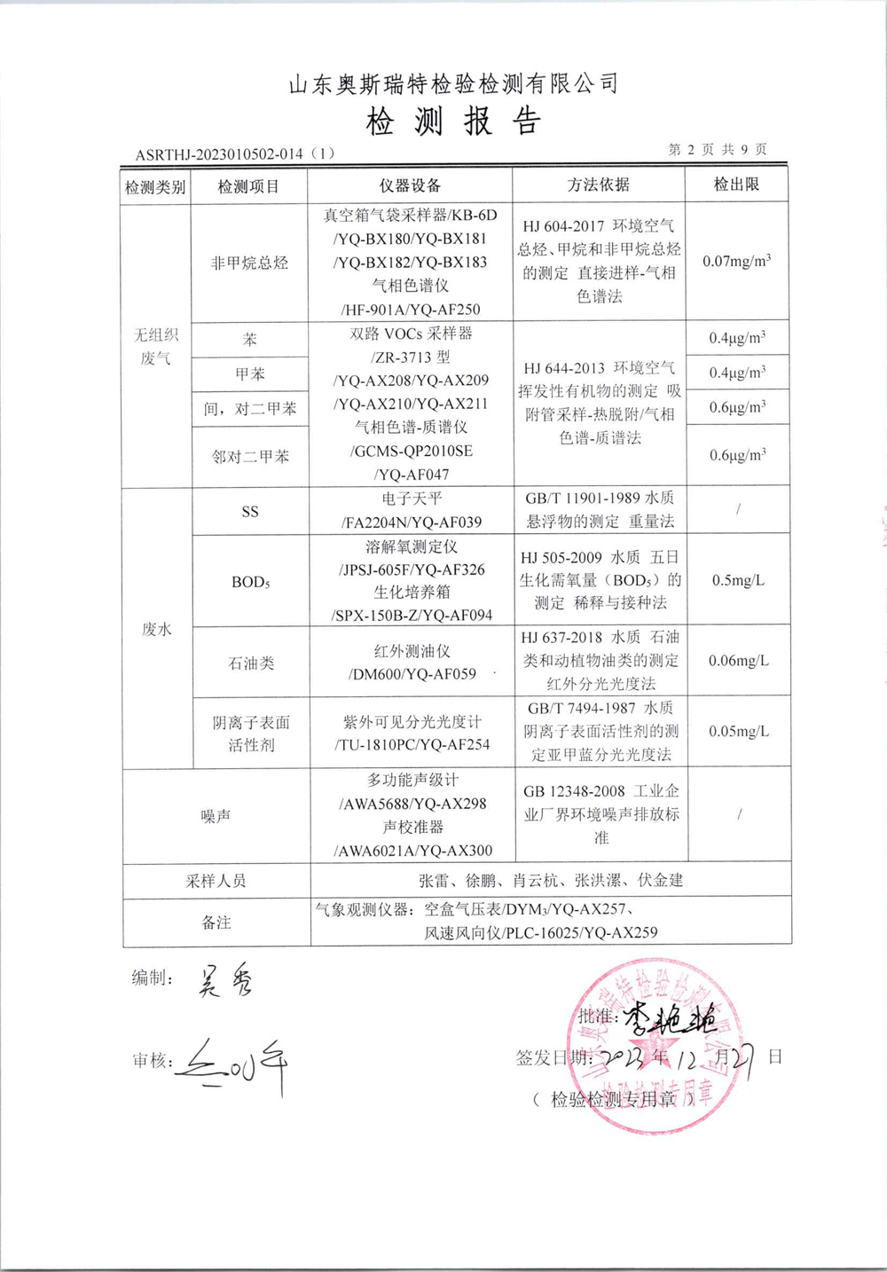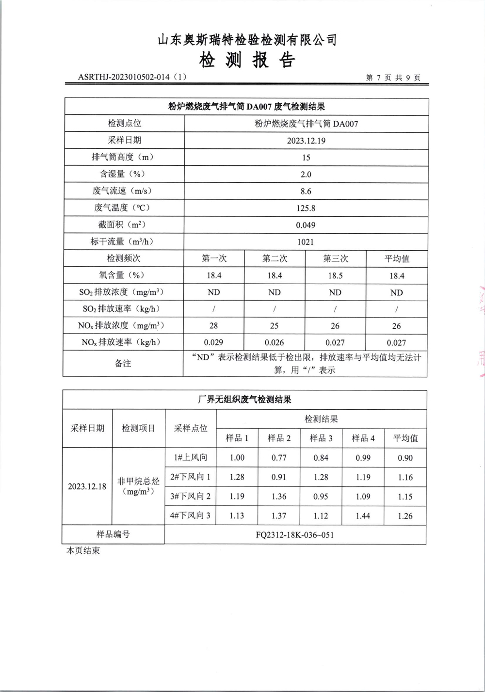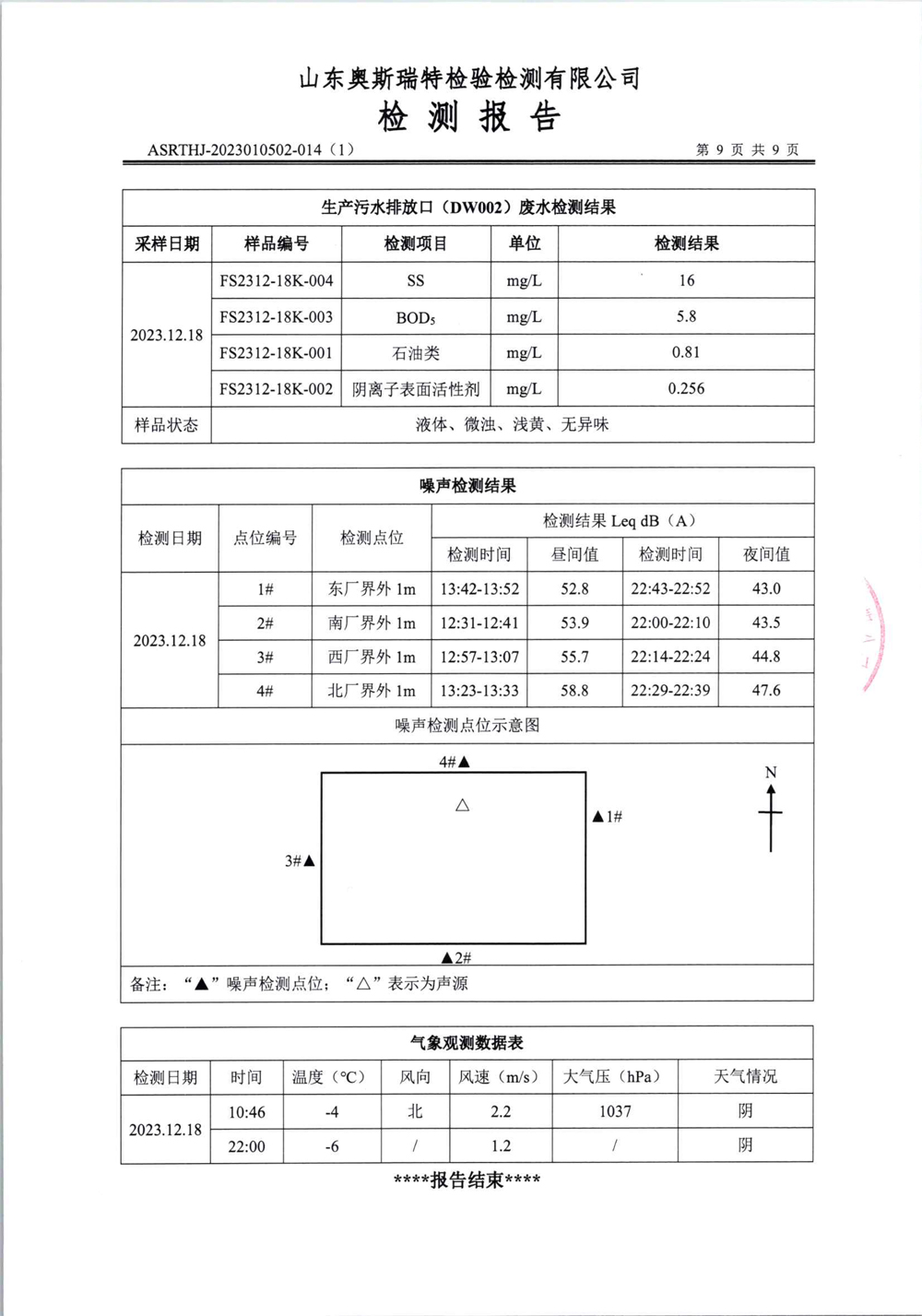 泰安啟程車輪制造有限公司2023年12月份環(huán)境污染物排放檢測報告