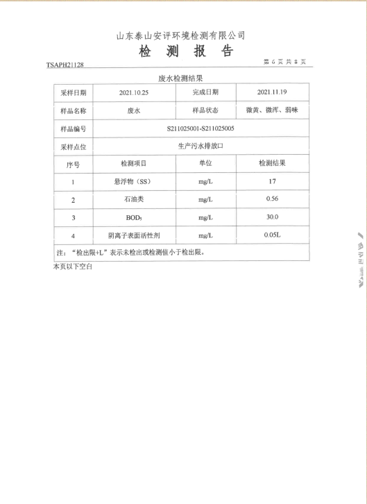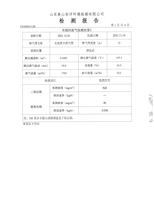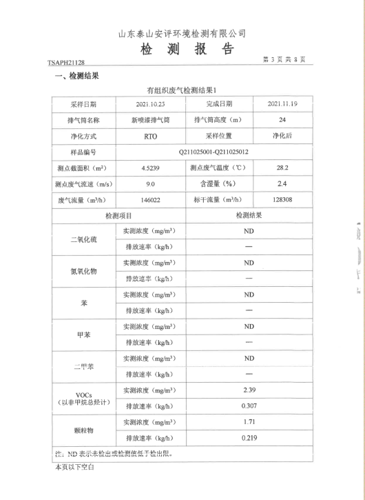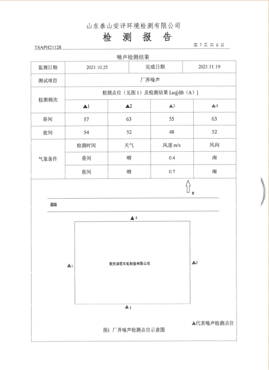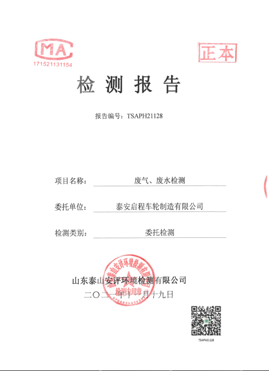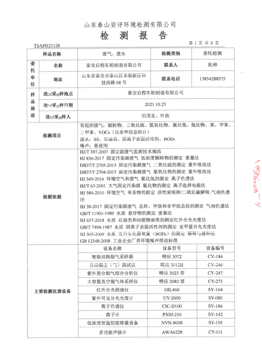 泰安啟程車輪制造有限公司2021年10月份環(huán)境污染物排放檢測報告