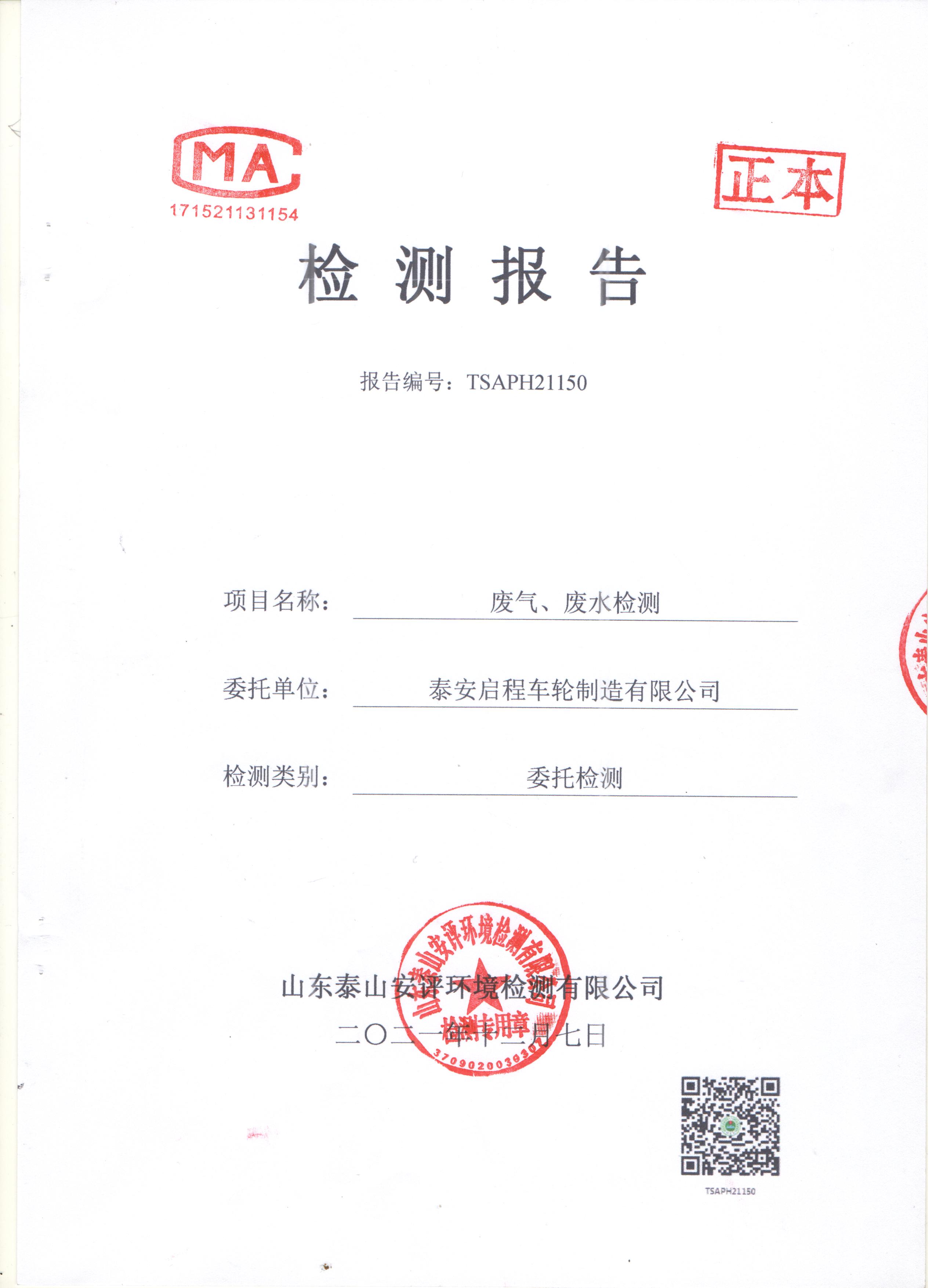 泰安啟程車輪制造有限公司2021年12月份環(huán)境污染物排放檢測(cè)報(bào)告