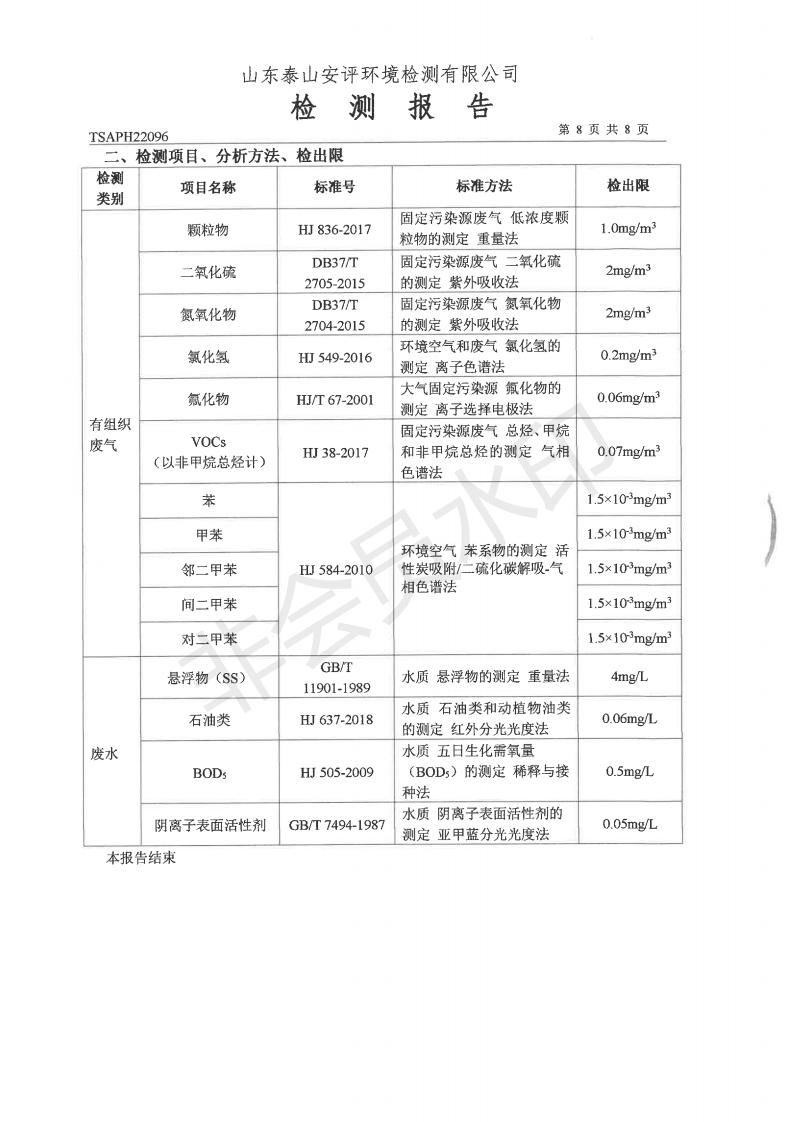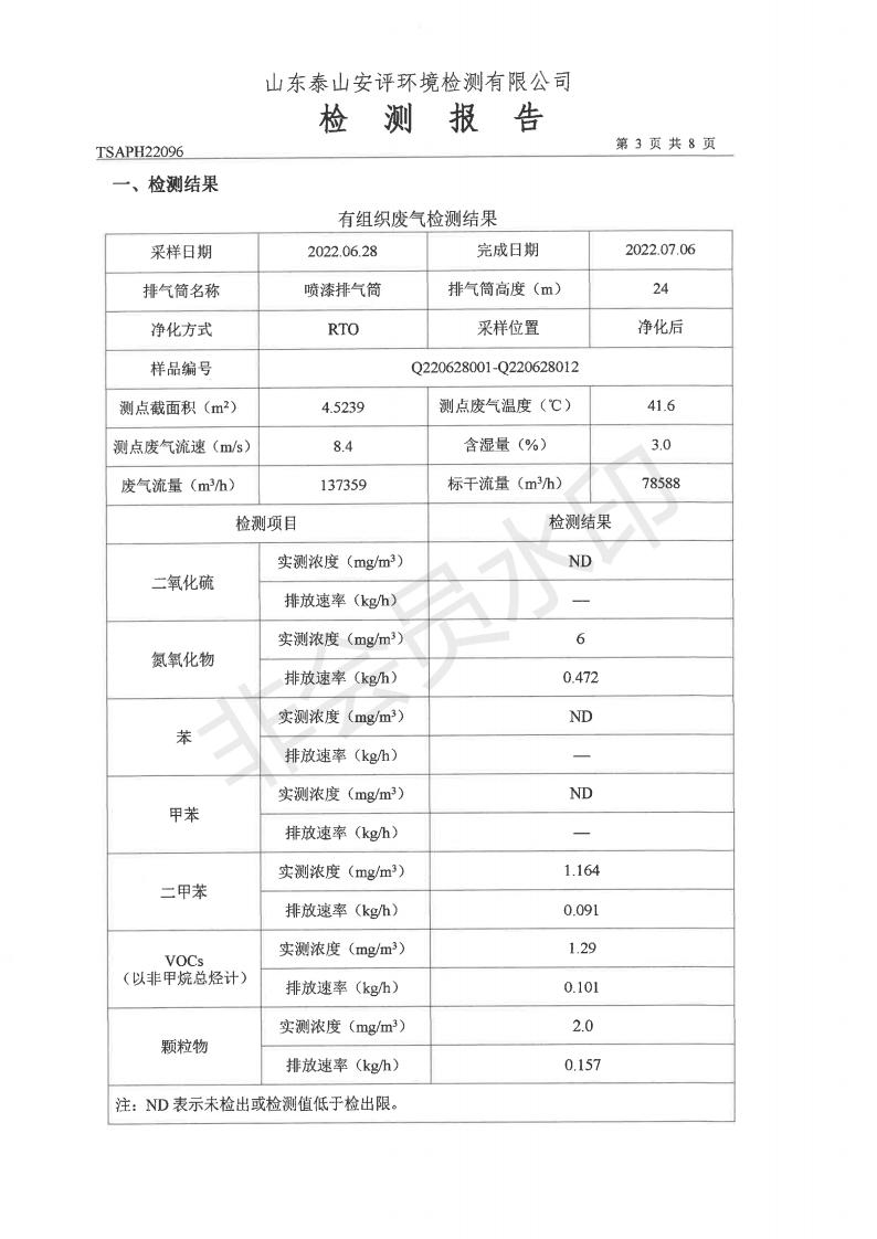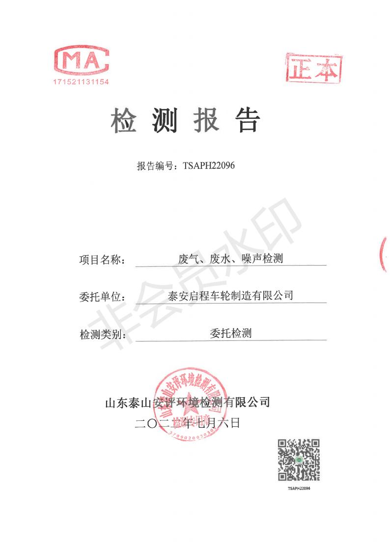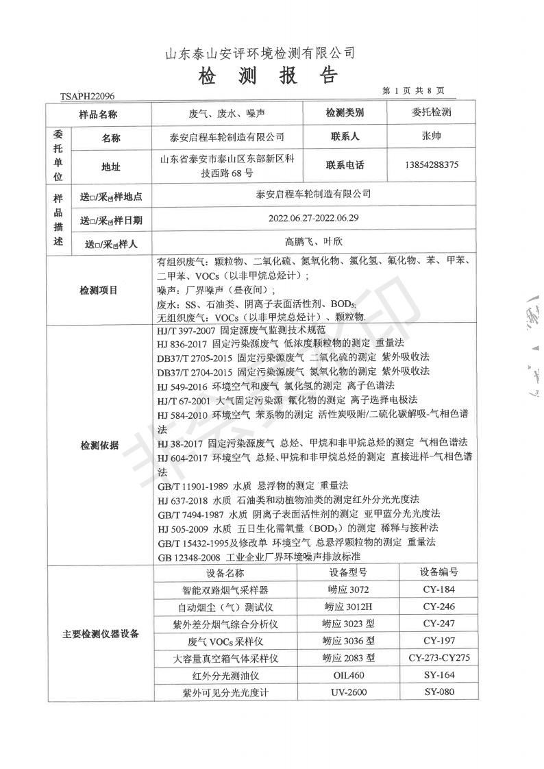 泰安啟程車輪制造有限公司2022年6月份環(huán)境污染物排放檢測報告
