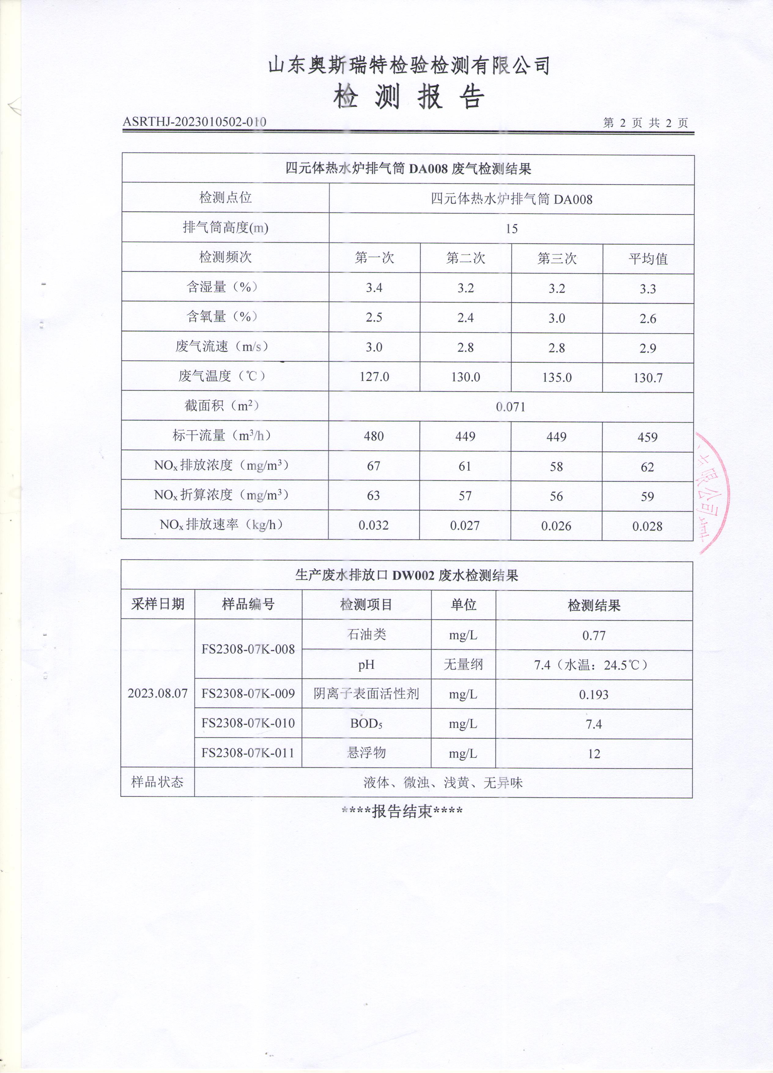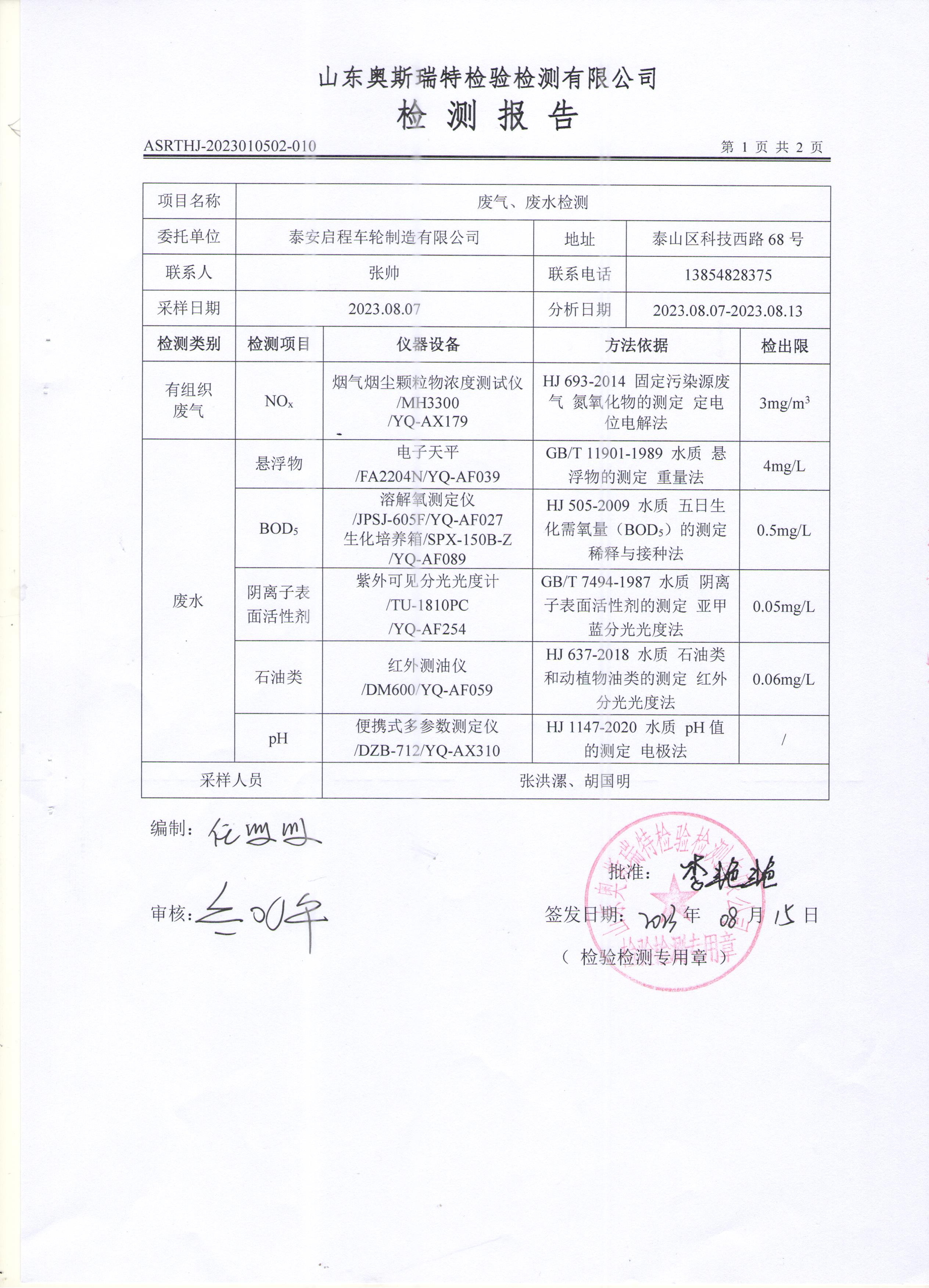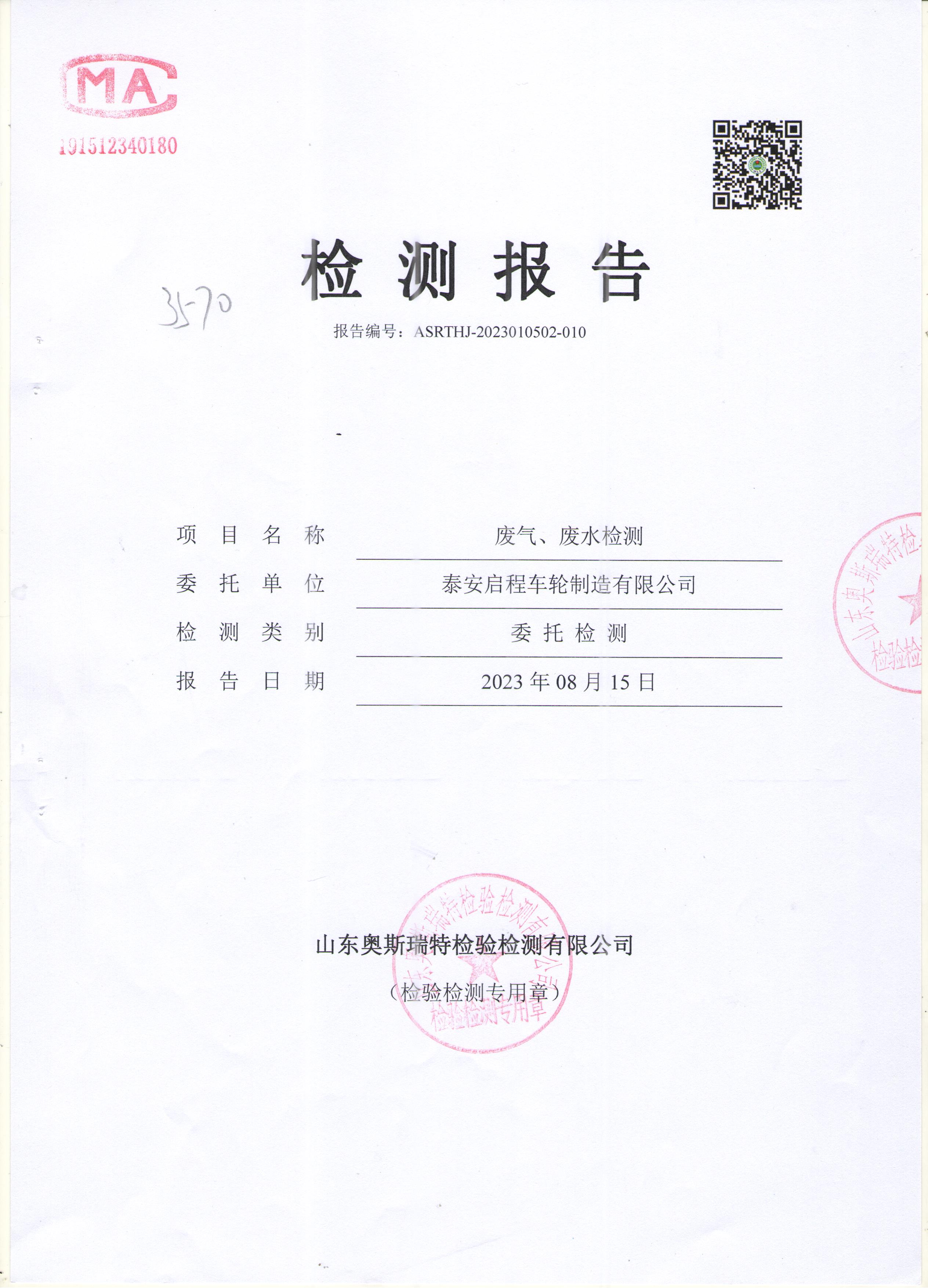 泰安啟程車輪制造有限公司2023年8月份環(huán)境污染物排放檢測報告