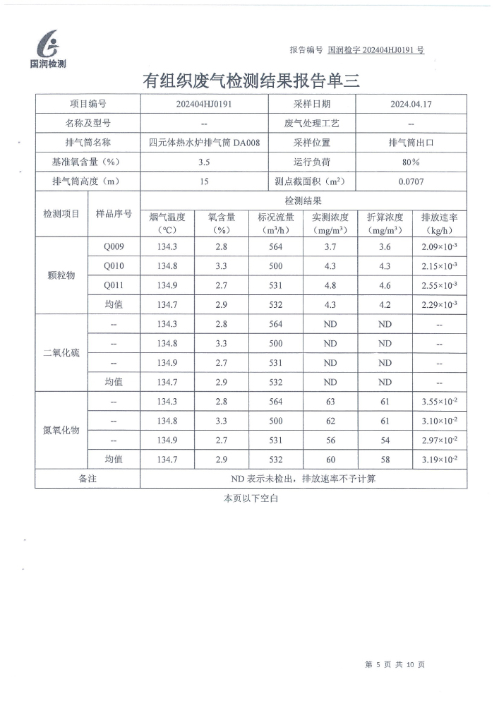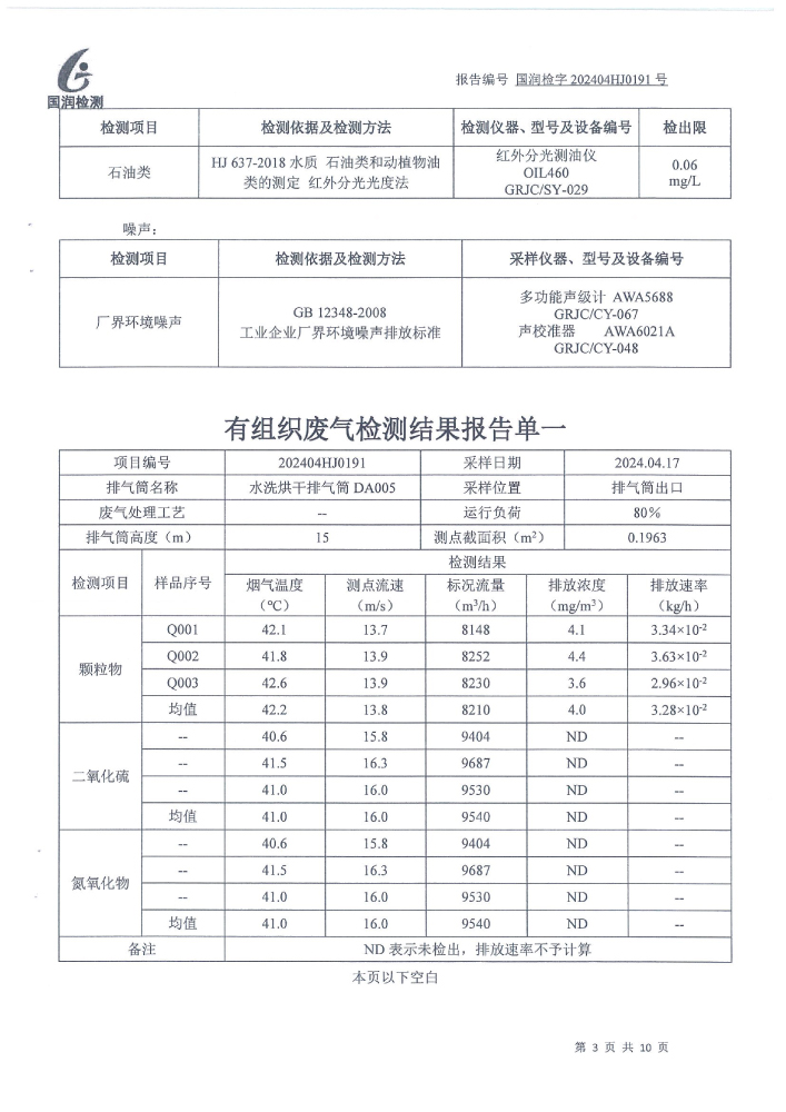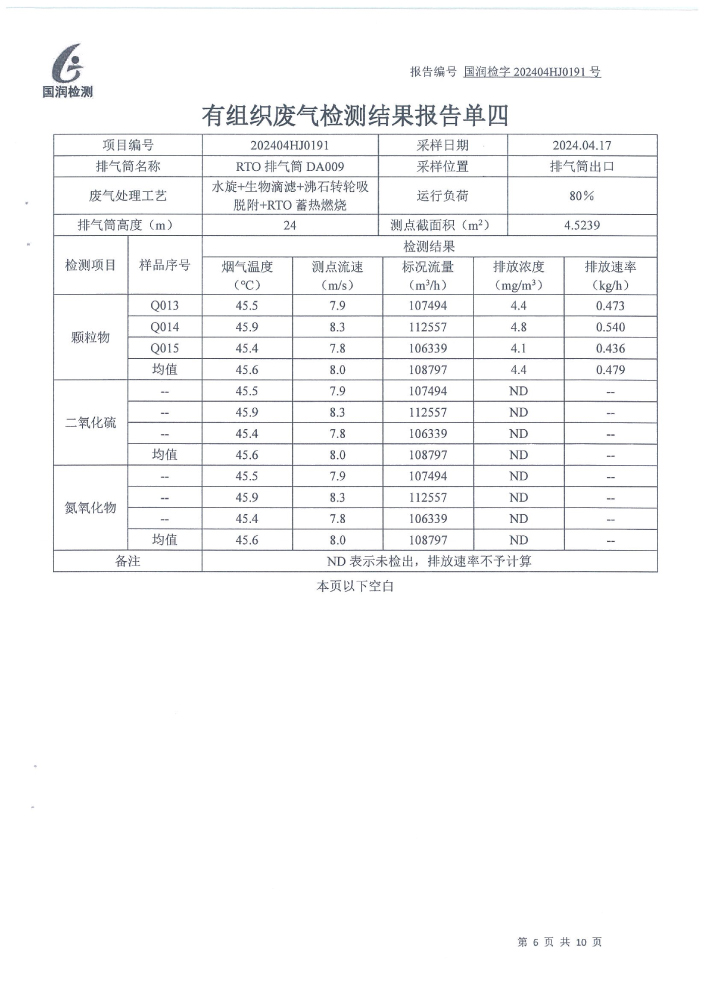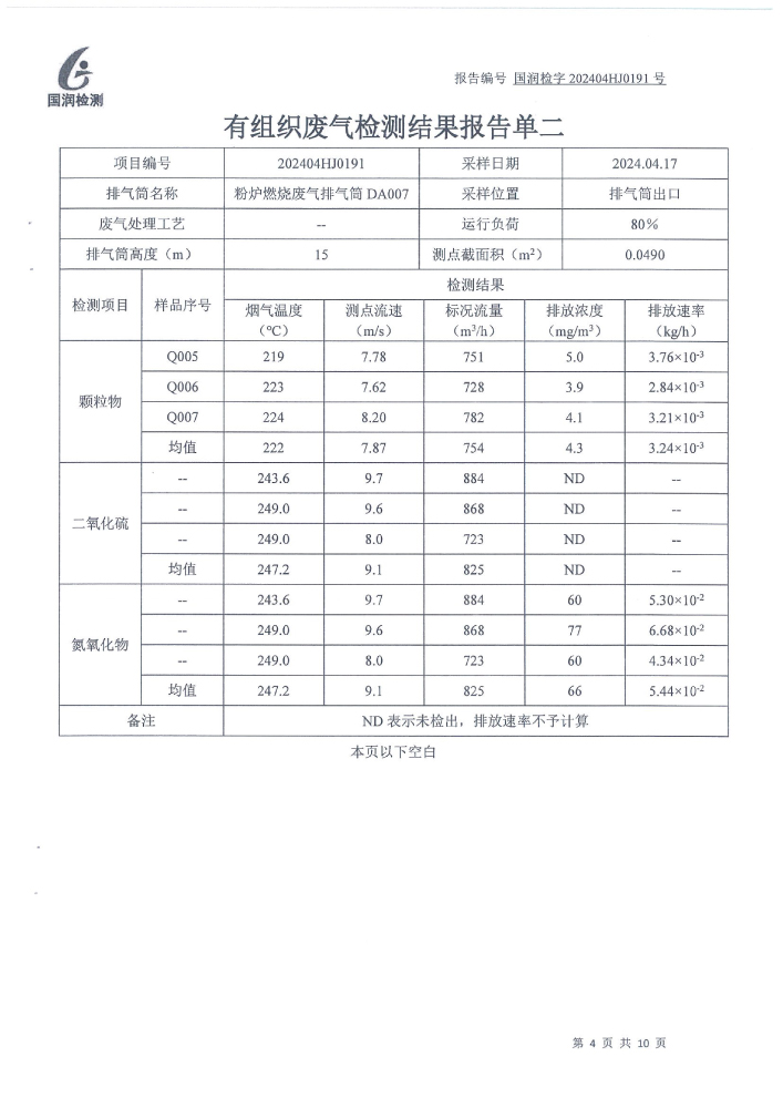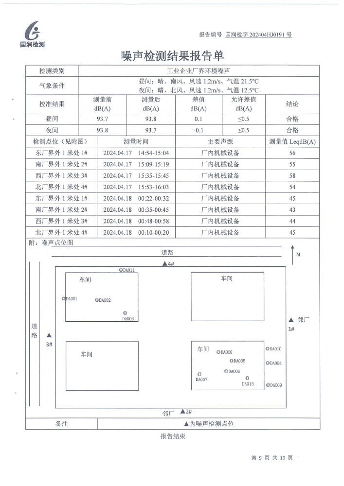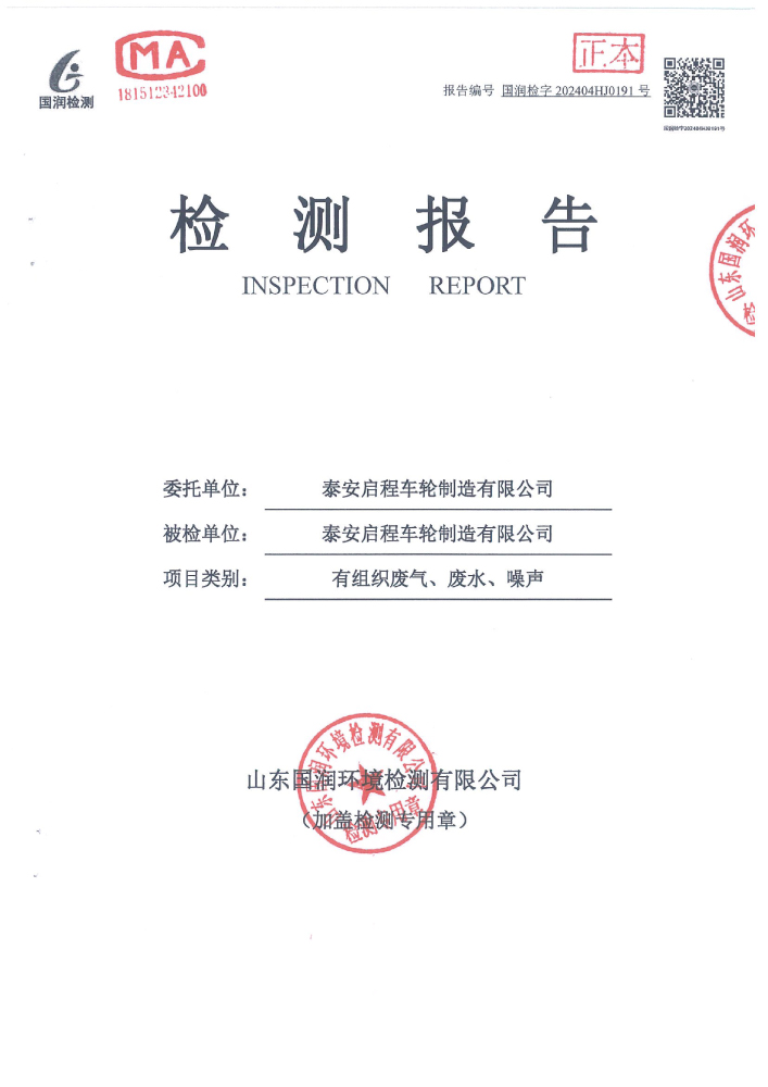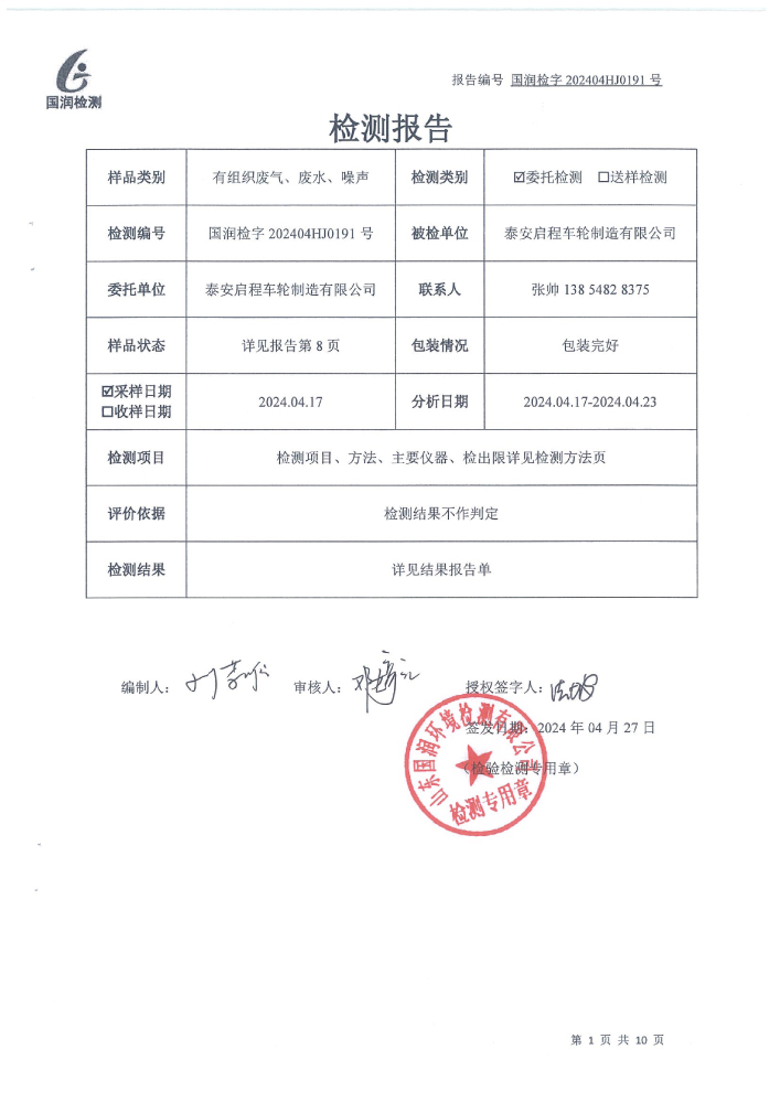 泰安啟程車輪制造有限公司2024年4月份環(huán)境污染物排放檢測報告